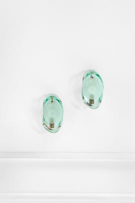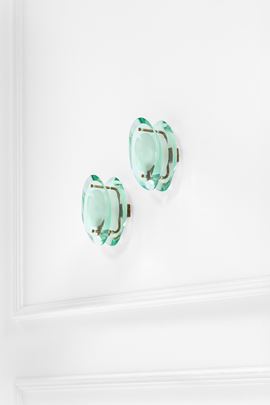 Cristallo molato con scavo opaco, ottone nichelato e spazzolato.