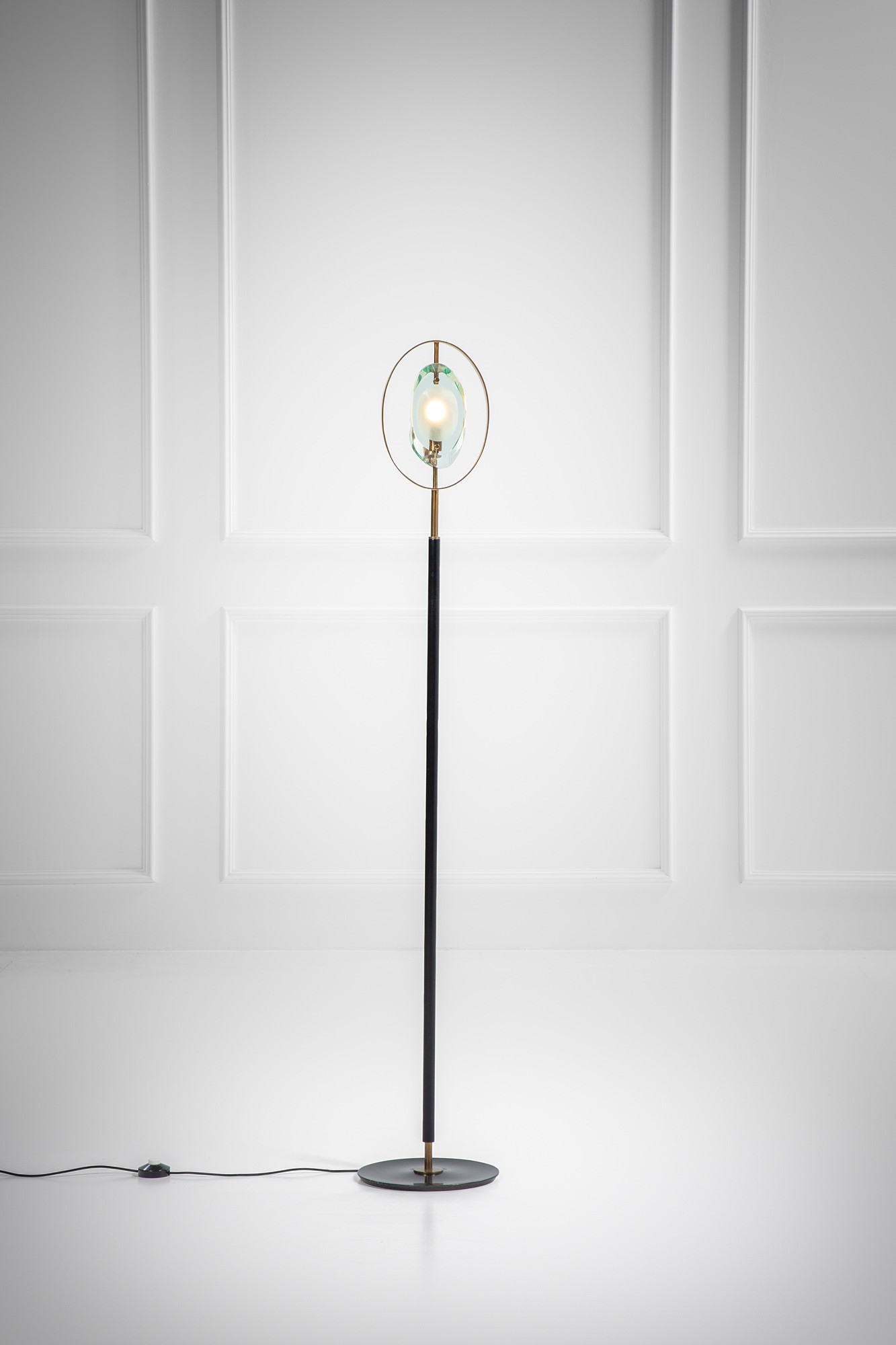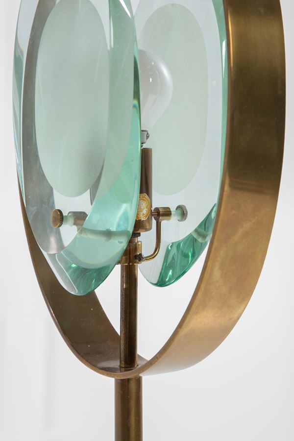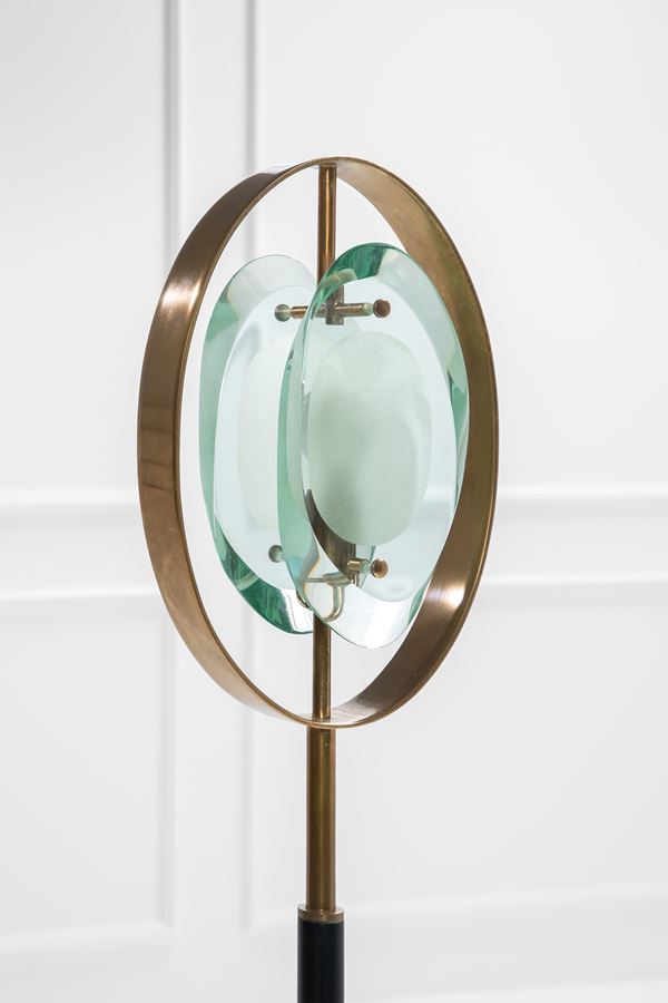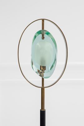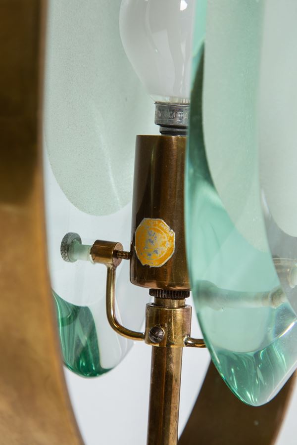 Metallo laccato, ottone, cristalli molati con scavo opaco.