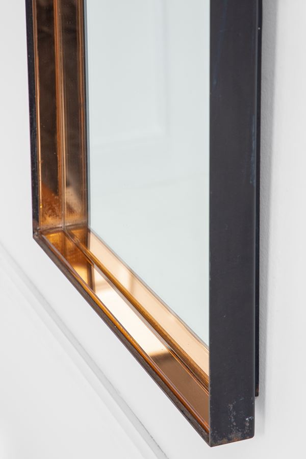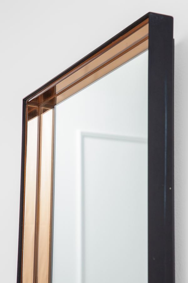 Metallo laccato, cristallo colorato, vetro specchiato.