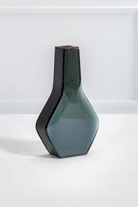 Cristallo colorato, molato e specchiato, legno laccato, ottone.