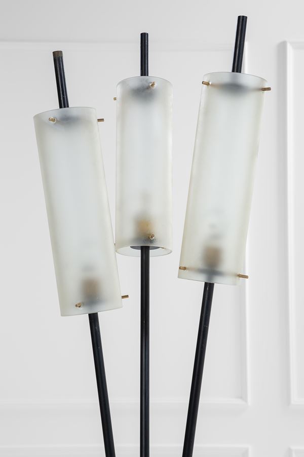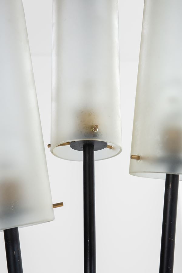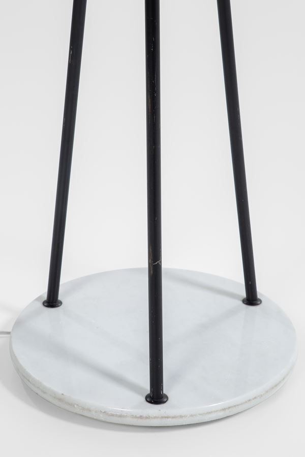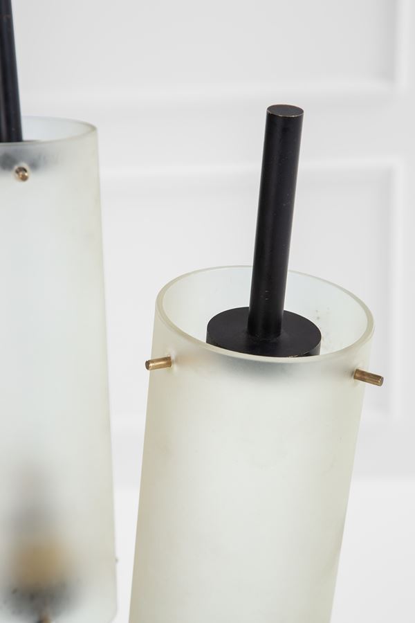 Ottone verniciato, vetro duplex opal bianco, marmo.