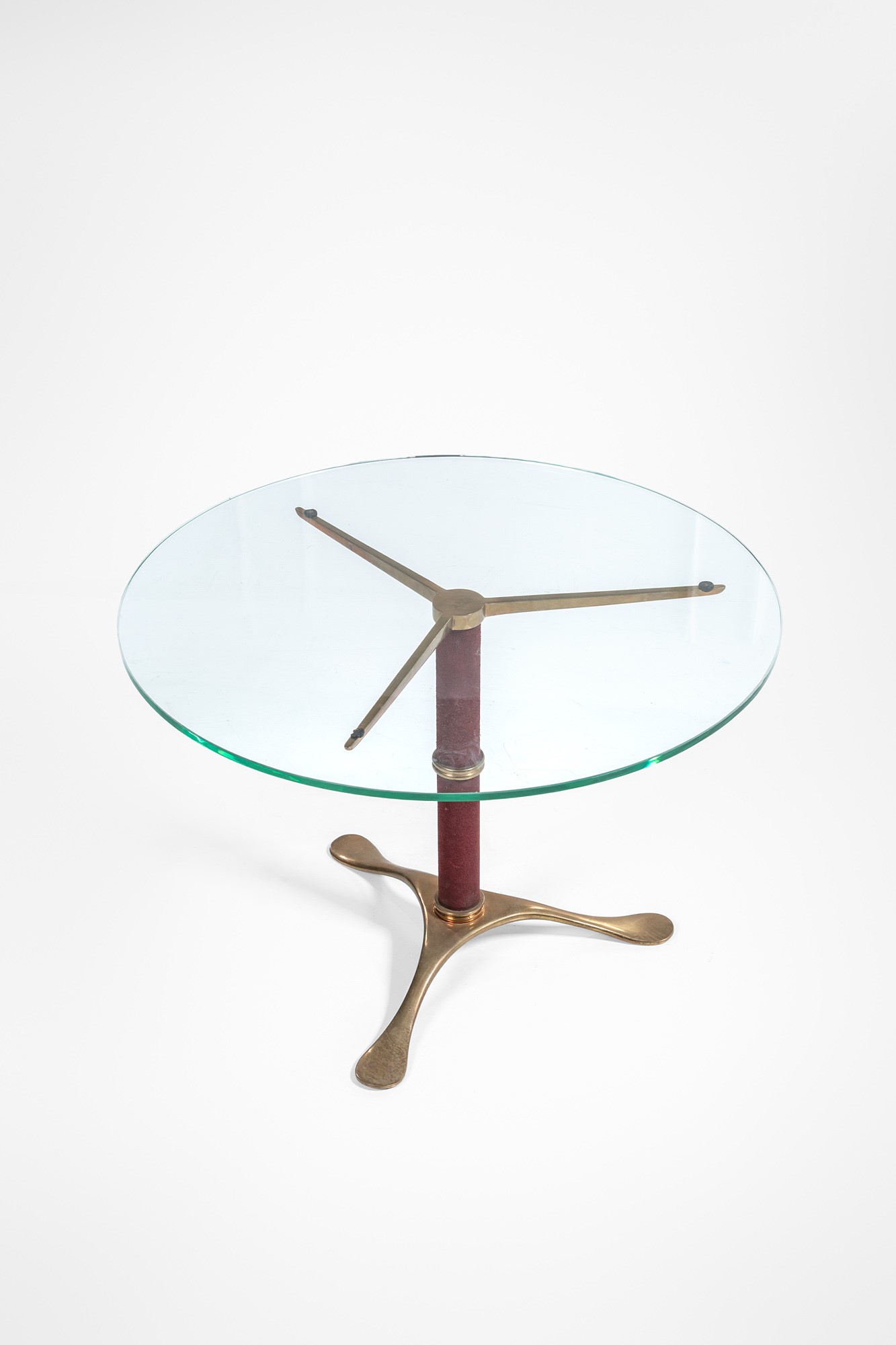 Ottone, cristallo molato, metallo verniciato con finitura raggrinzante.