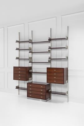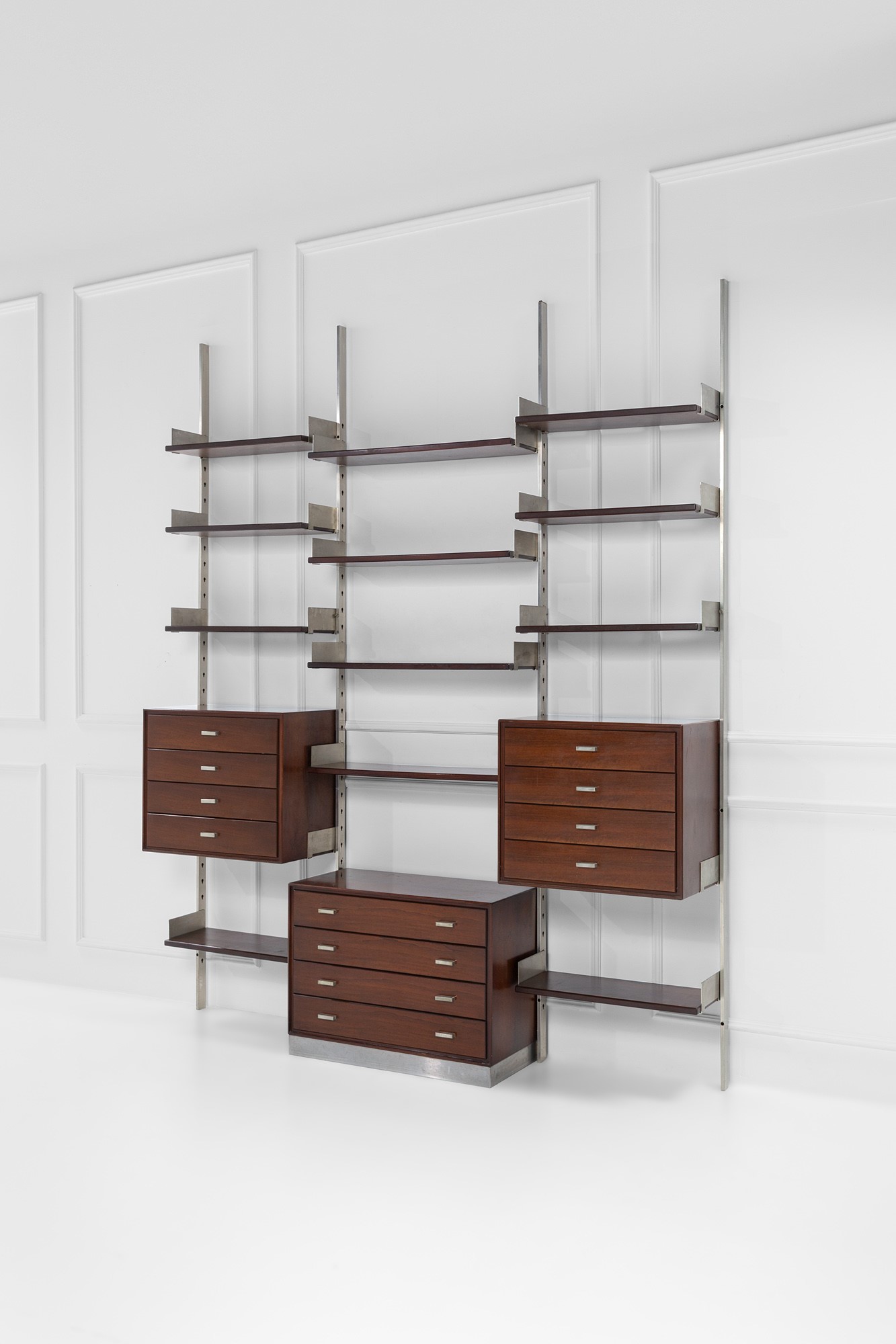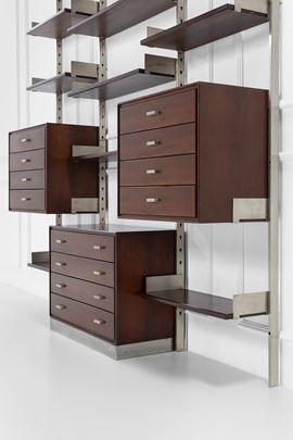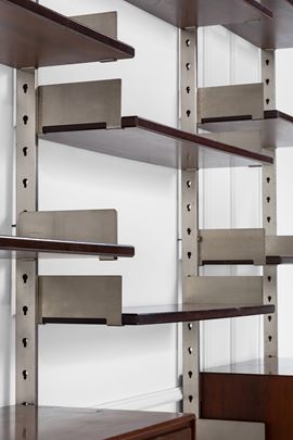 Legno di noce, legno impiallacciato, acciaio.