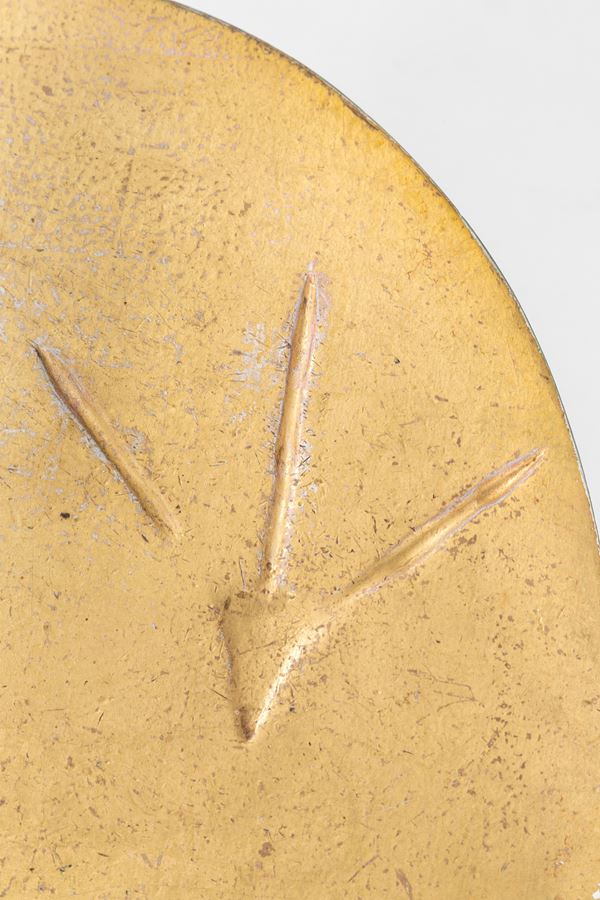 Fusione di bronzo lucidato, legno rivestito in foglia d'oro.