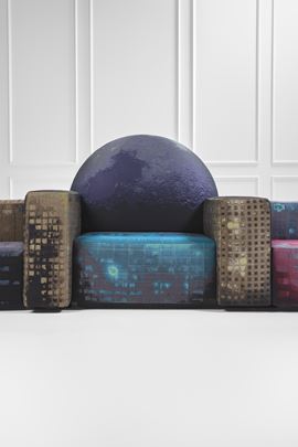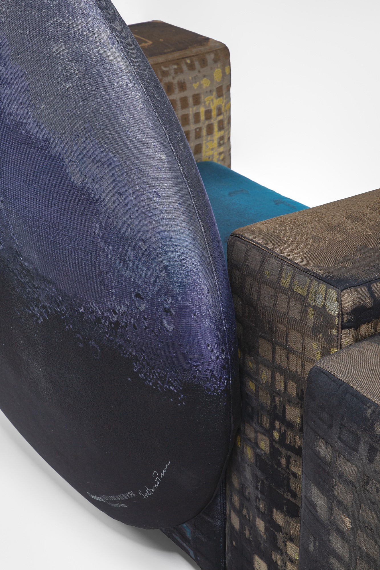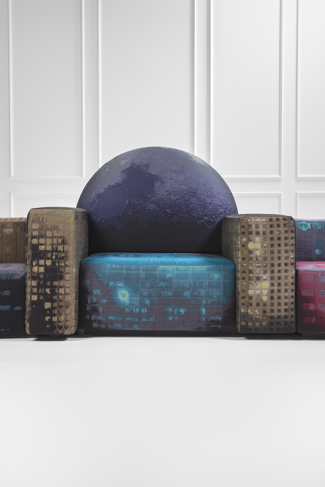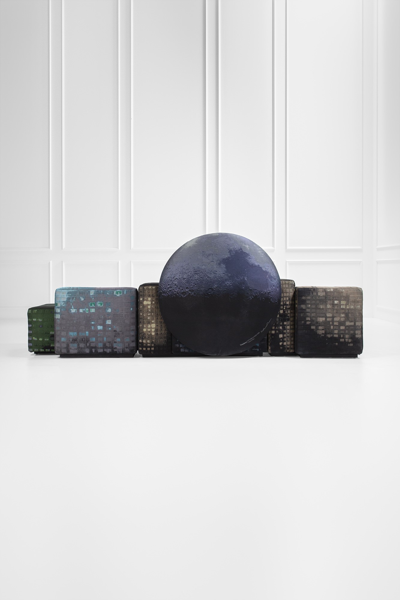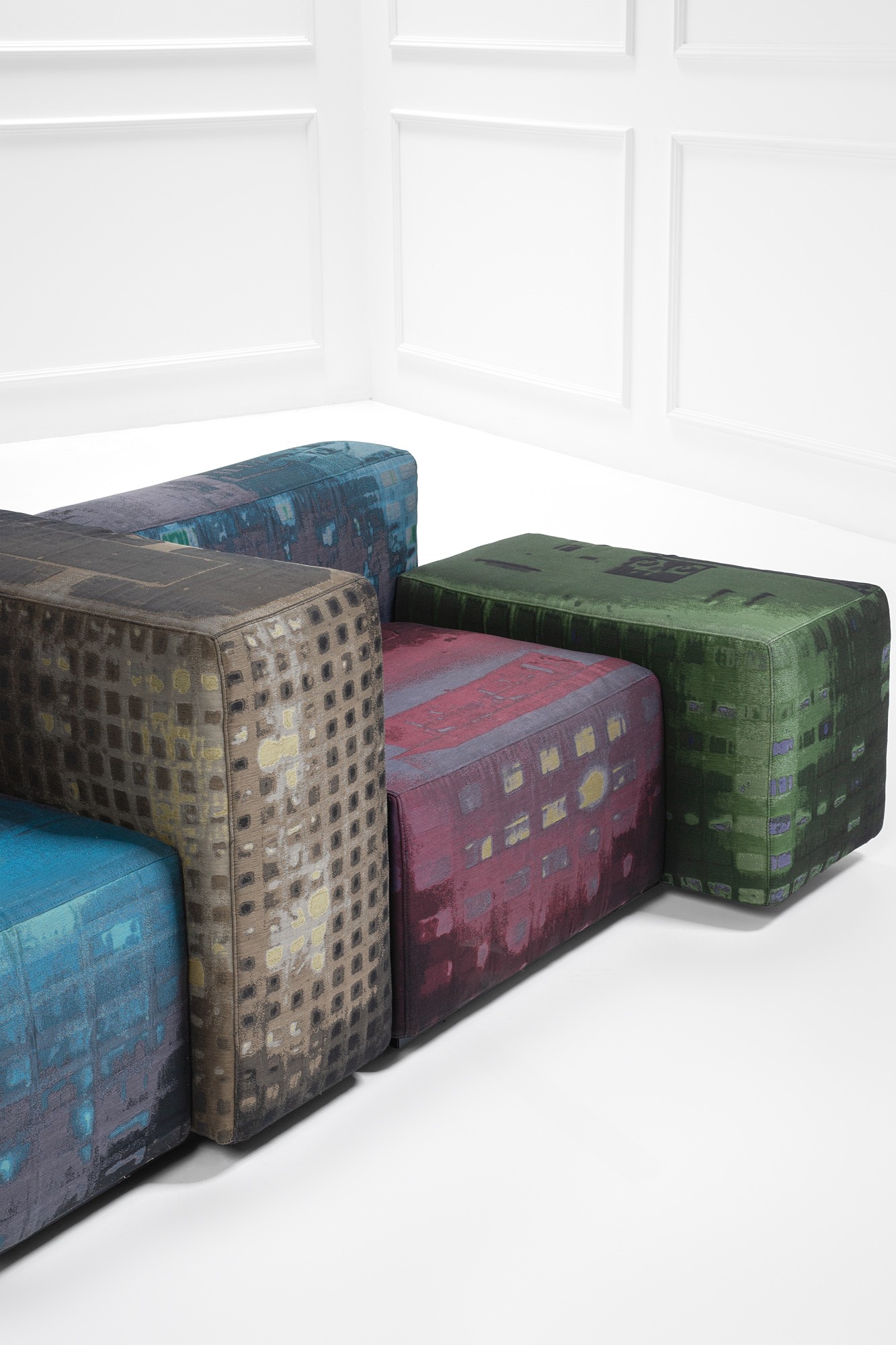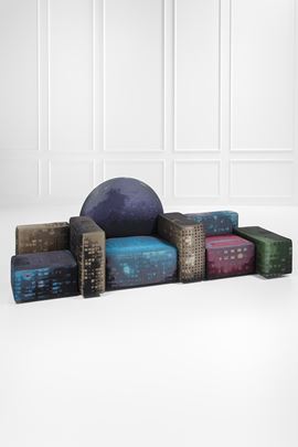 Sistema di sedute rivestite in tessuto a rilievo.