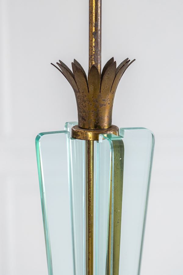 Vetro molato, vetro satinato, ottone, alluminio verniciato.