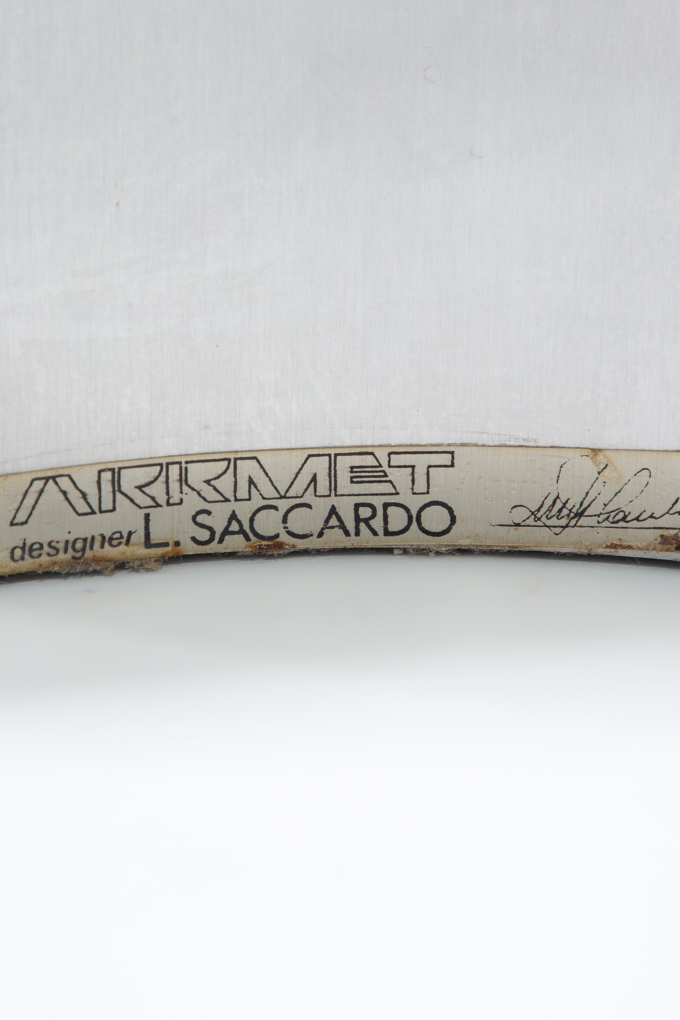 Etichetta del produttore e firma del designer.