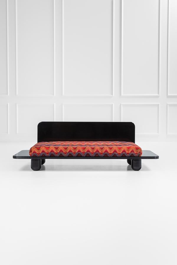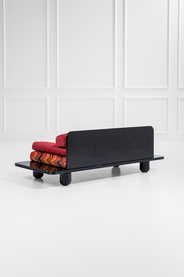 Legno laccato, tessuto.