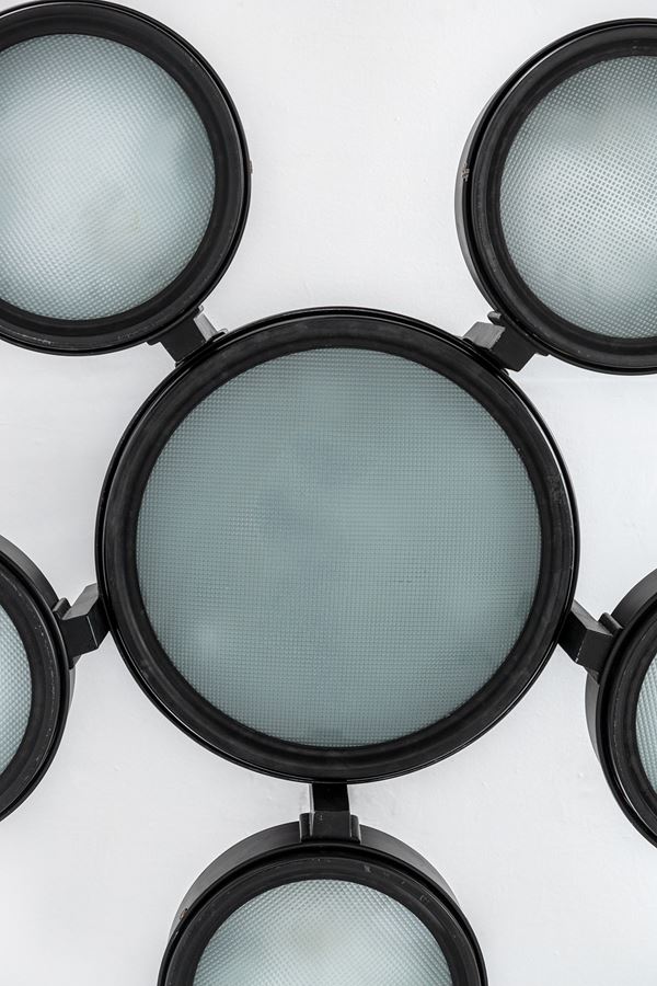Alluminio verniciato, vetro stampato.