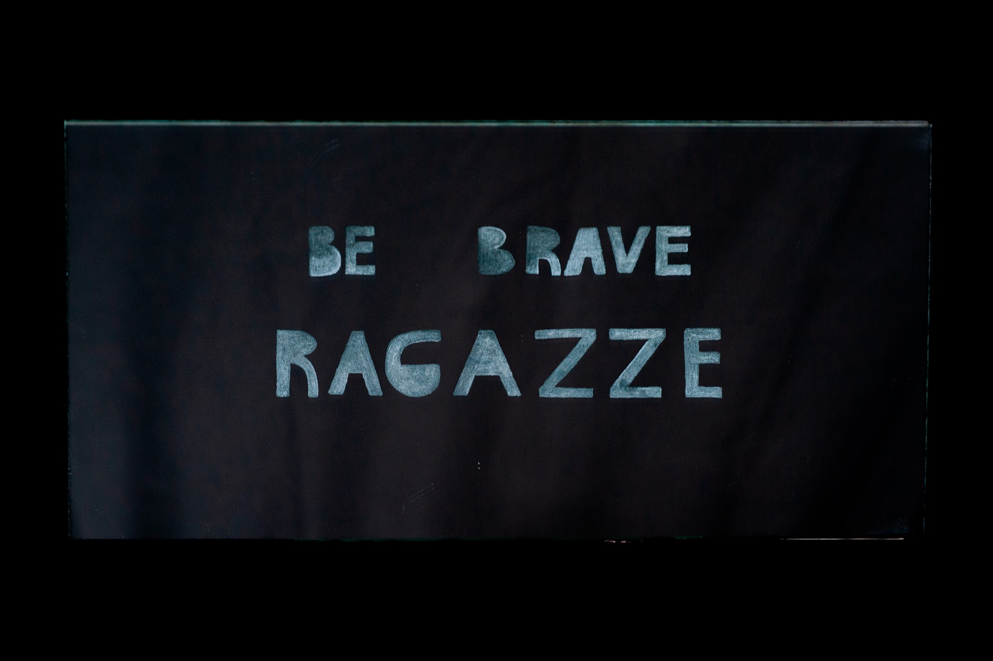 Vetro a specchio, tempera, compensato, incisione, pittura a tempera.
