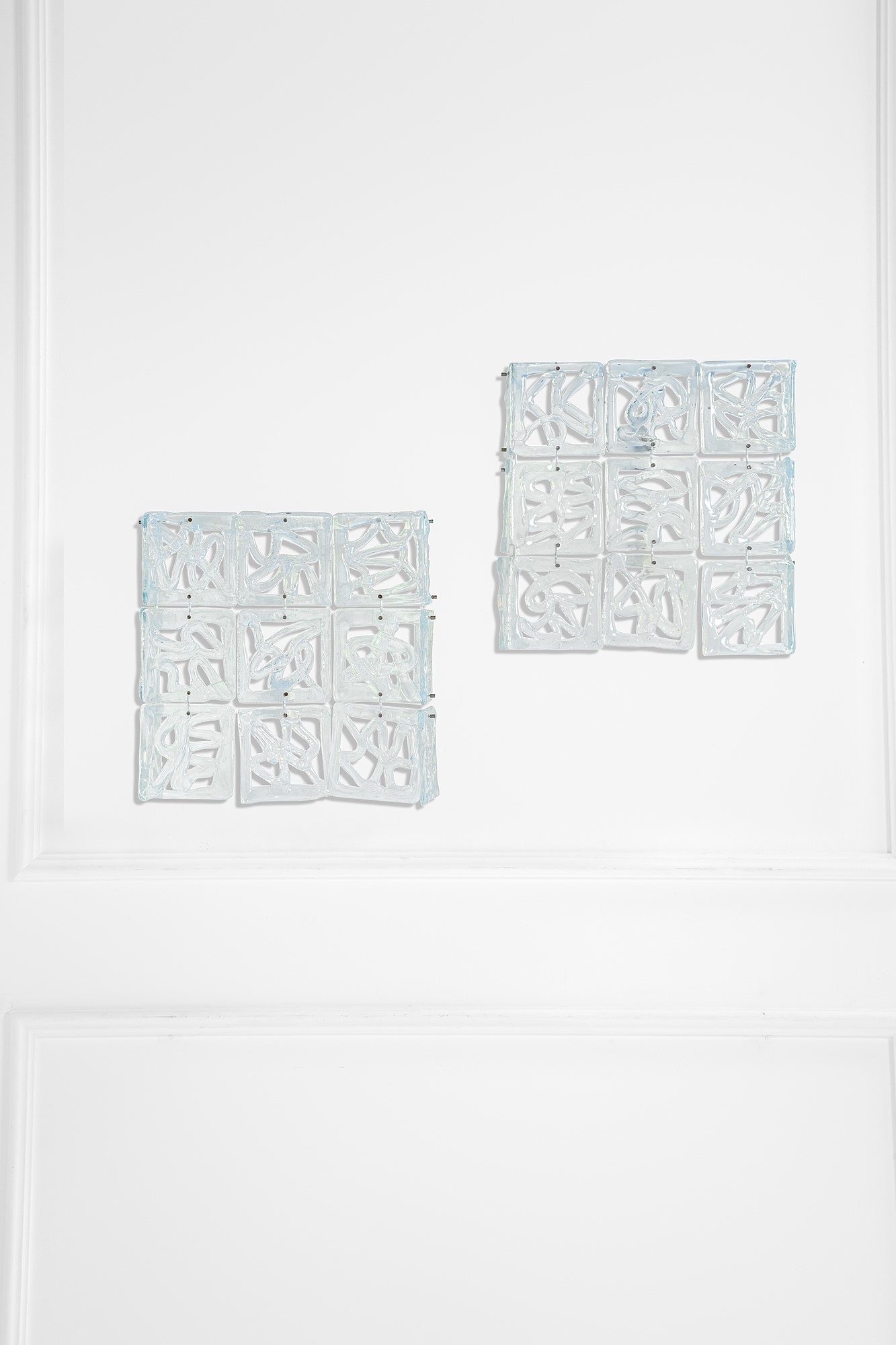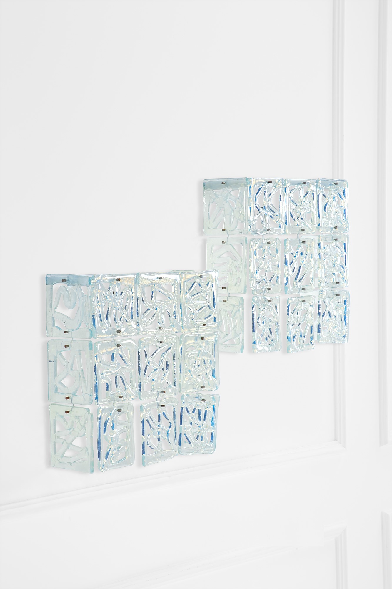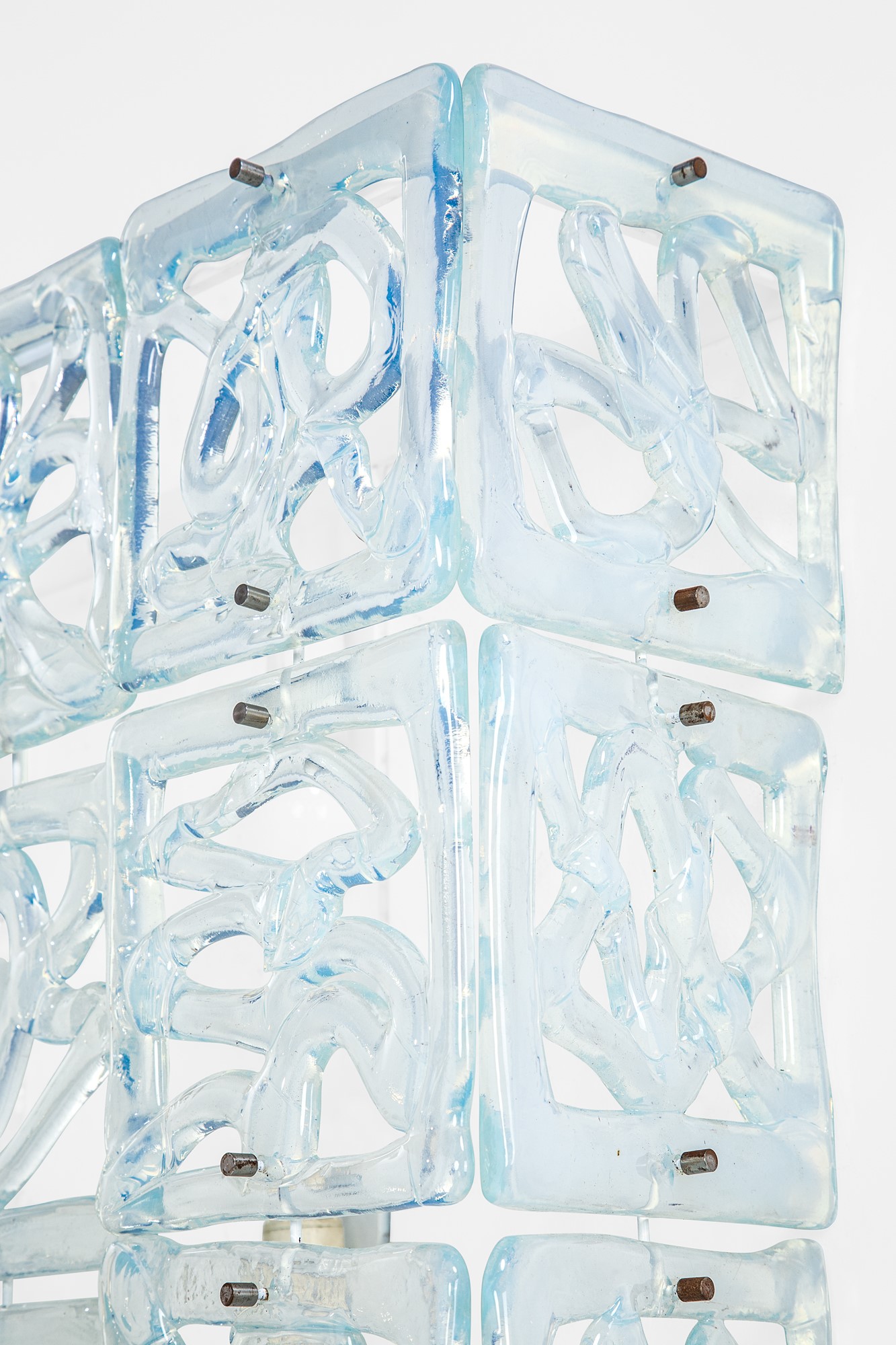 Elementi in vetro iridescente, ottone.
