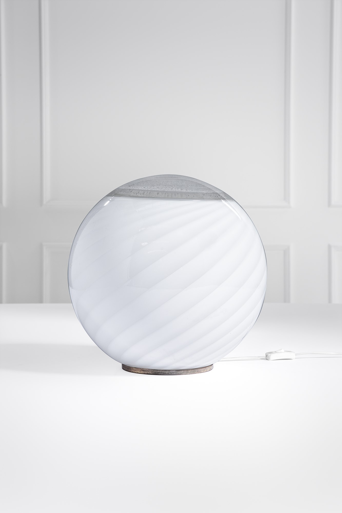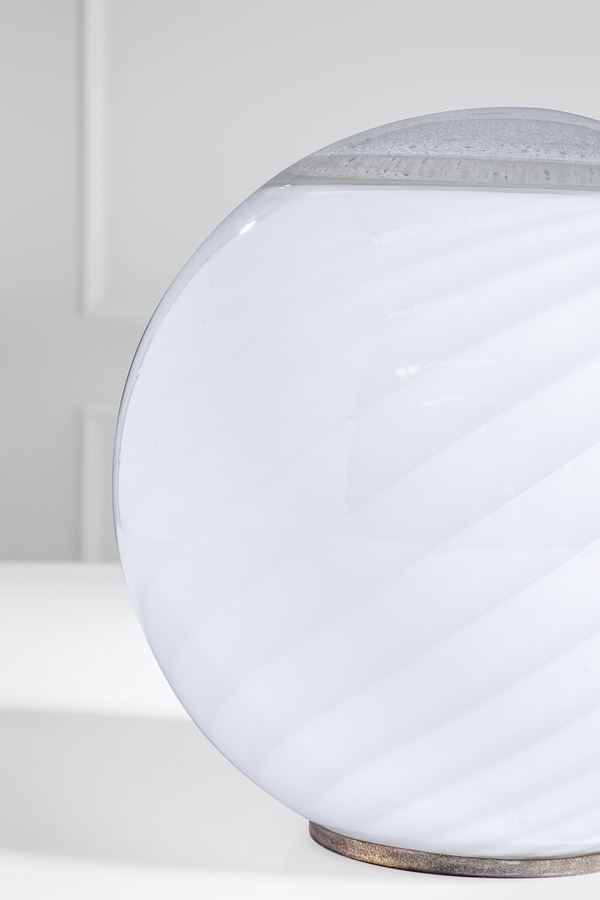 Ottone lucido, vetro trasparente e fasce lattimo, vetro a bollicine.