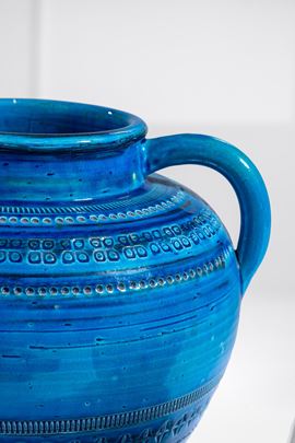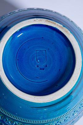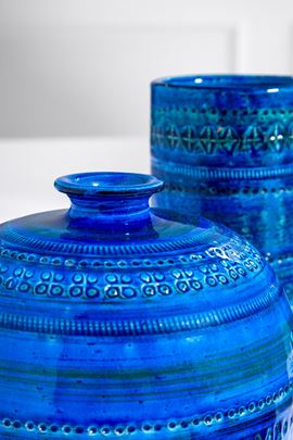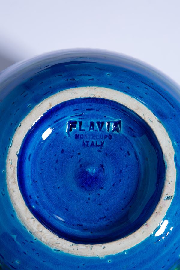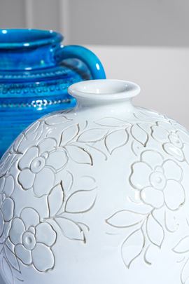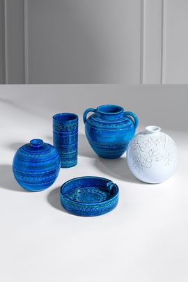 Vaso bianco h cm 22, vaso anfora h cm 22, vaso blu h cm 19, vaso cilindrico h cm 21, posacenere diam. cm 21