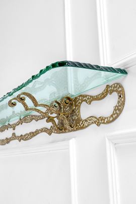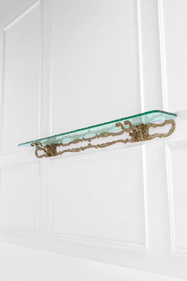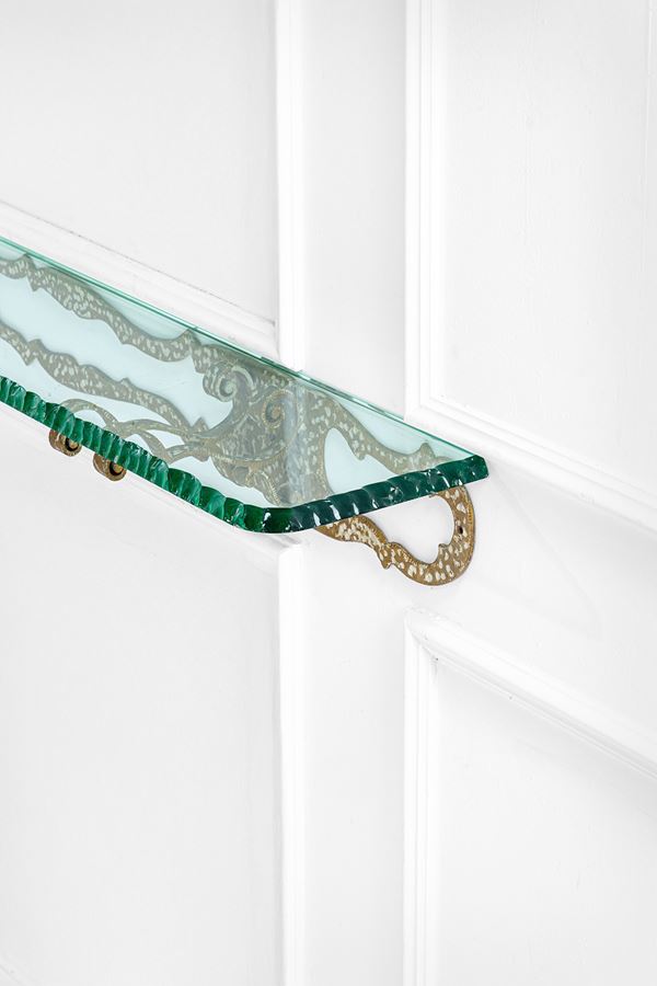 Metallo forgiato e martellato, vetro di forte spessore molato e lavorato a spacco.