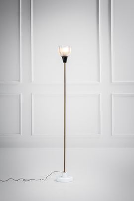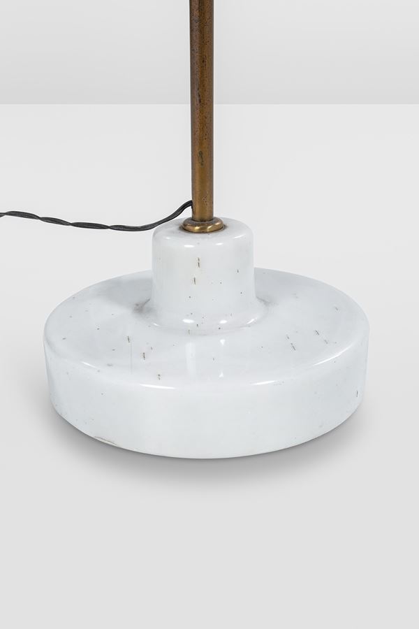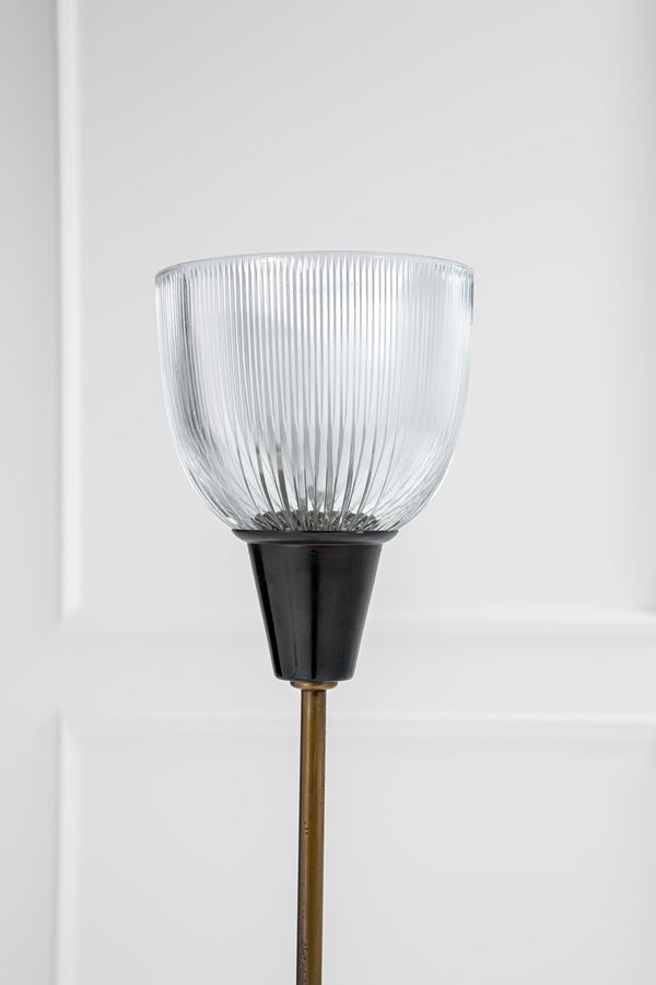 Alluminio anodizzato nero, ottone lucido, vetro prismatico, marmo tornito.