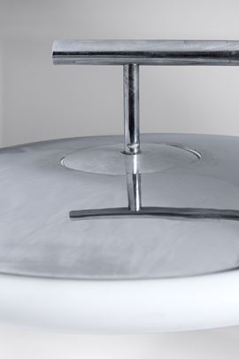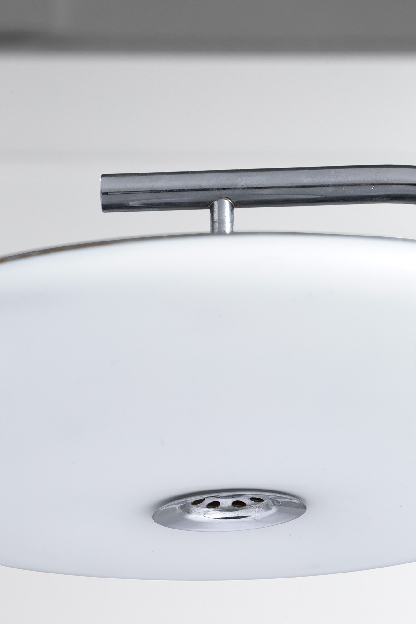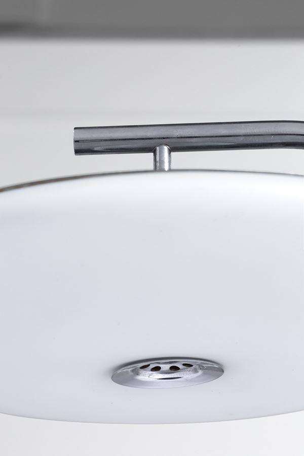 Metallo cromato, metallo laccato, vetro lattimo satinato.