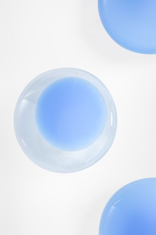 Vetro trasparente con incalmo di vetro colorato, metallo vernciato.