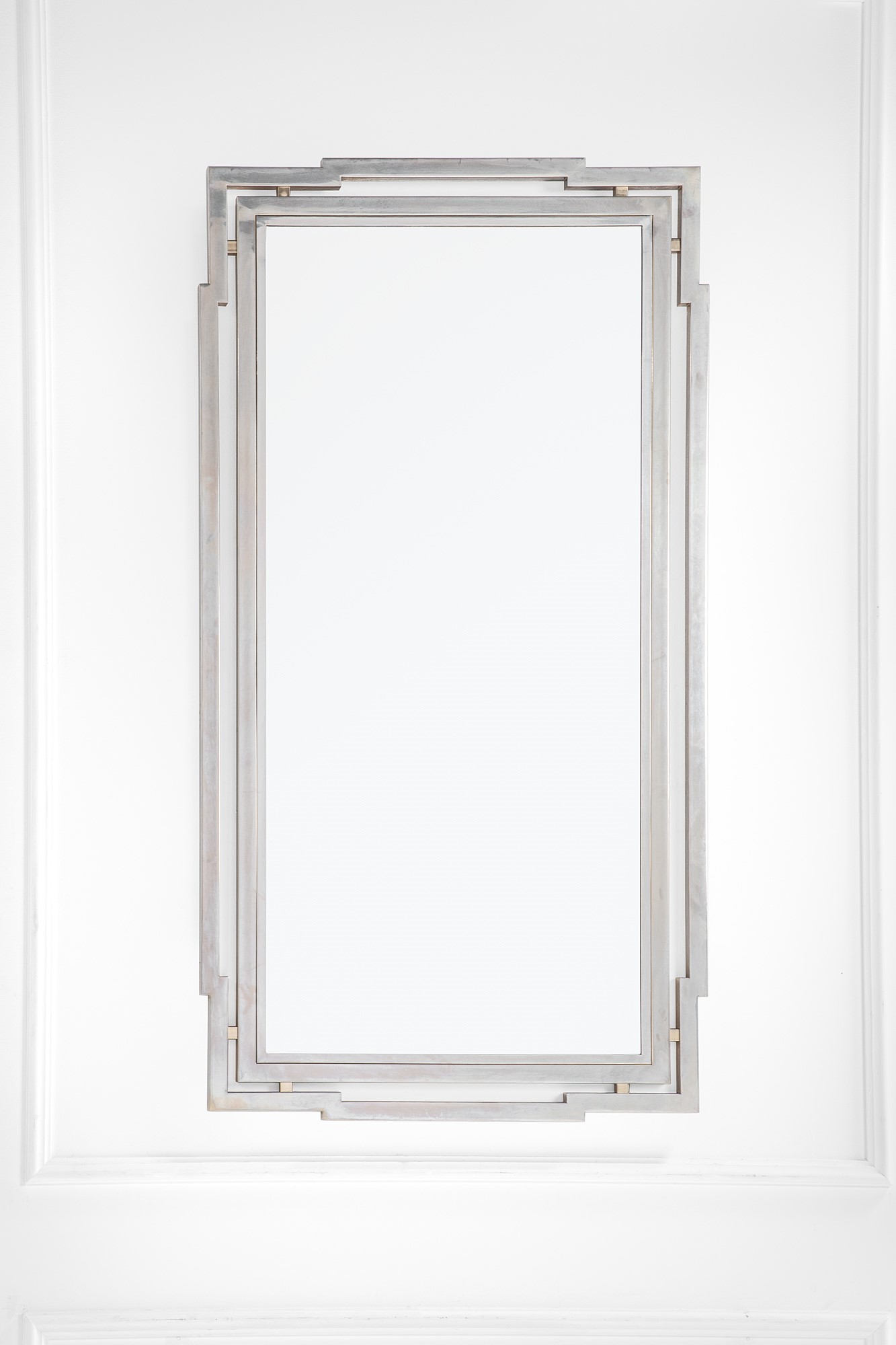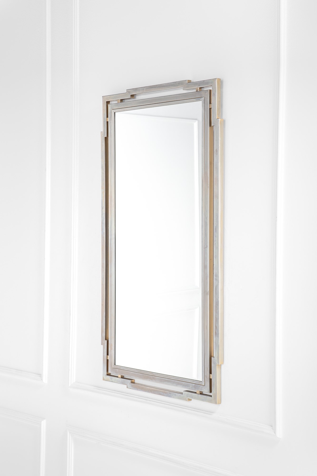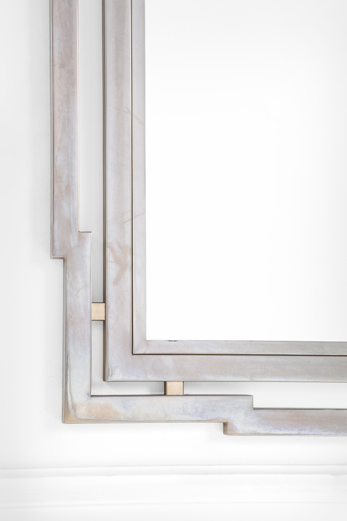 Metallo cromato, ottone dorato, vetro specchiato.