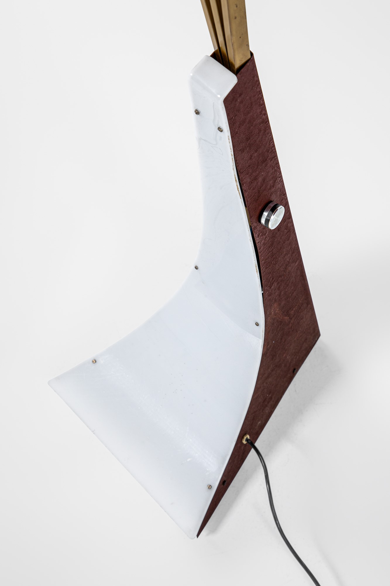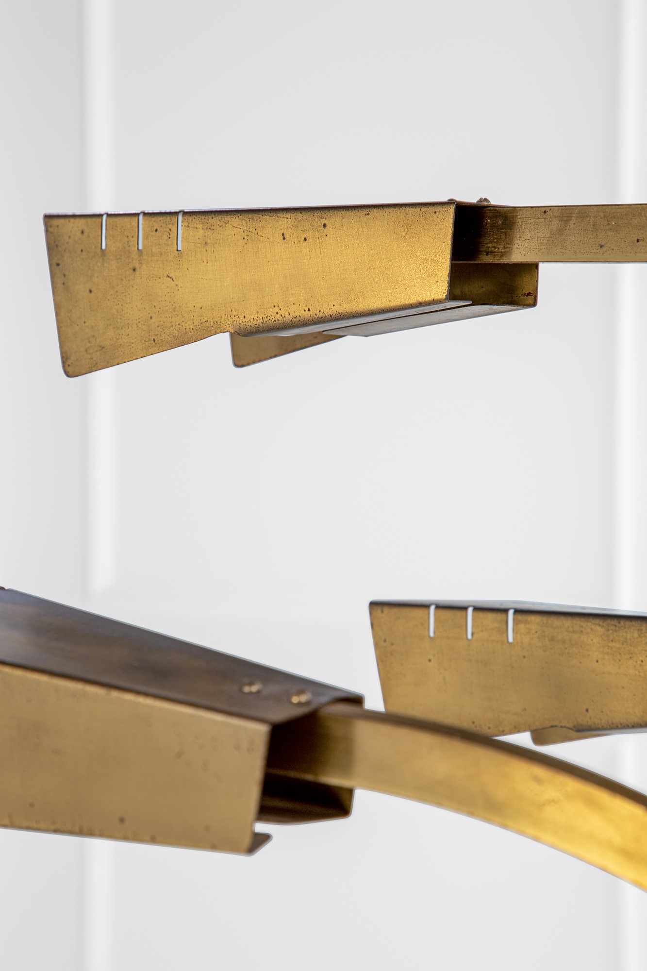 Ottone lucido, metallo verniciato, metacrilato opalino.