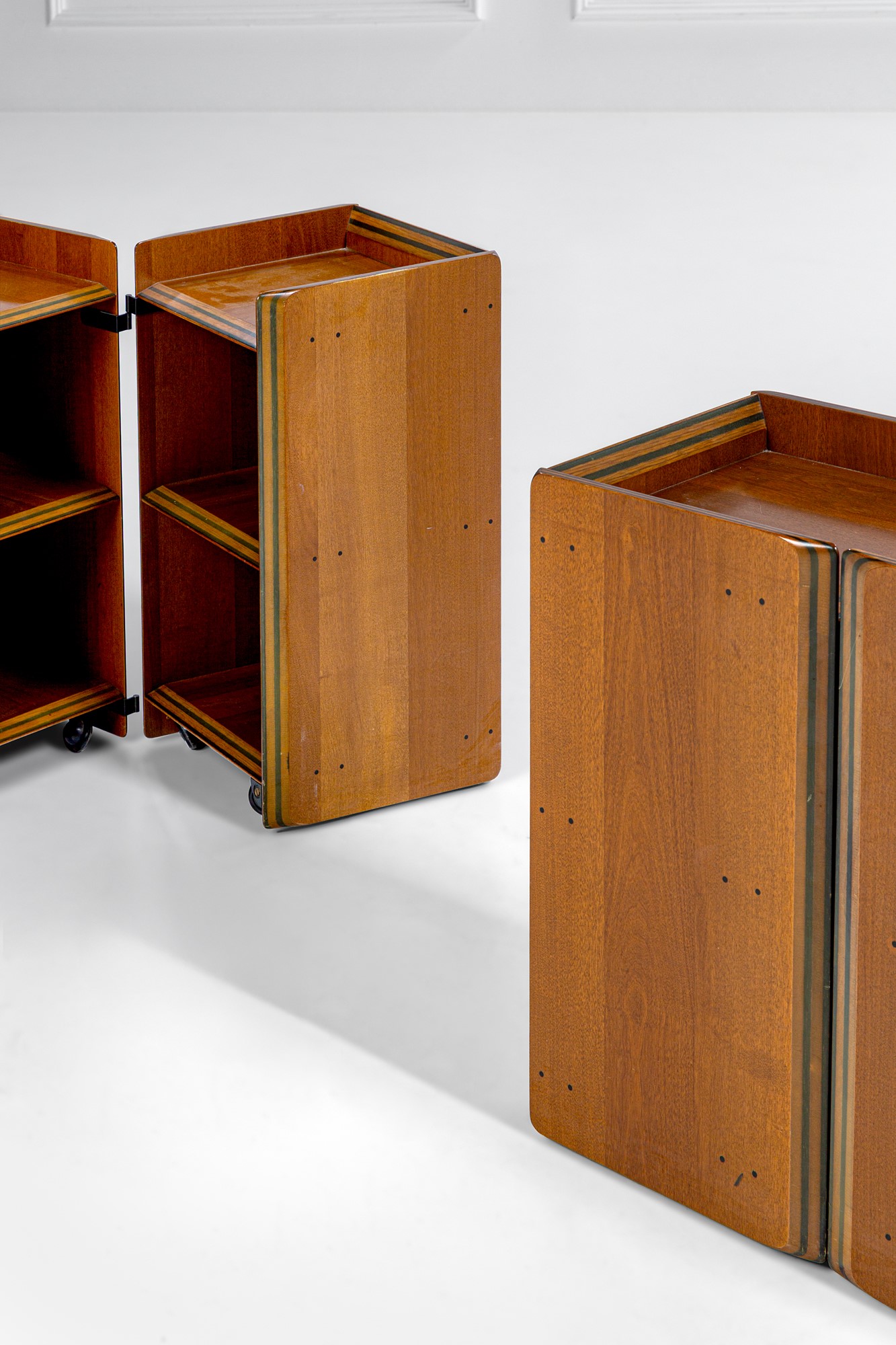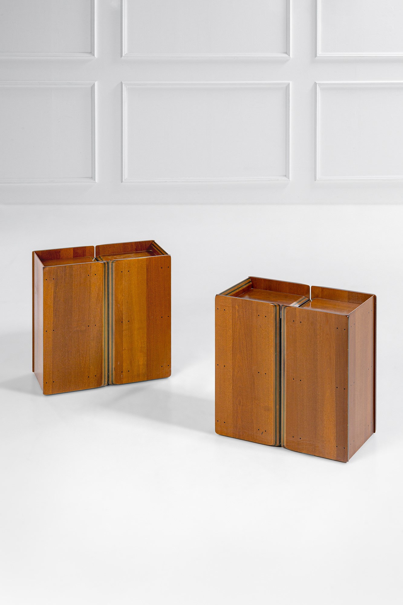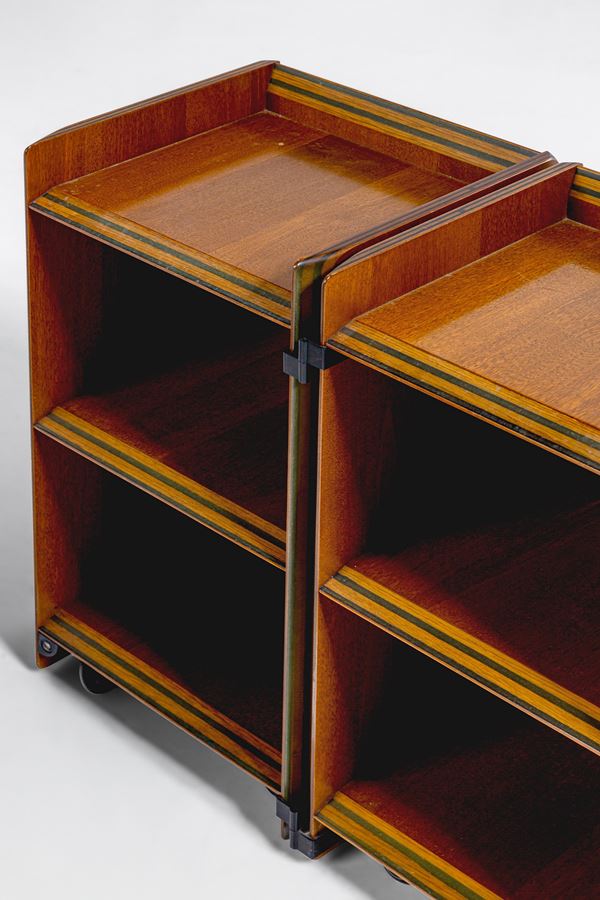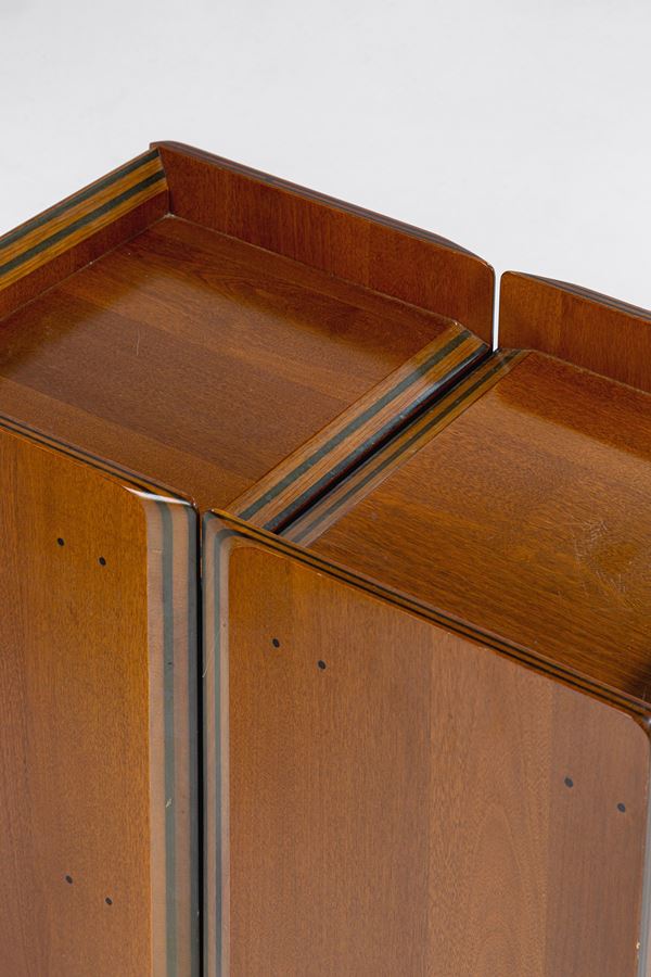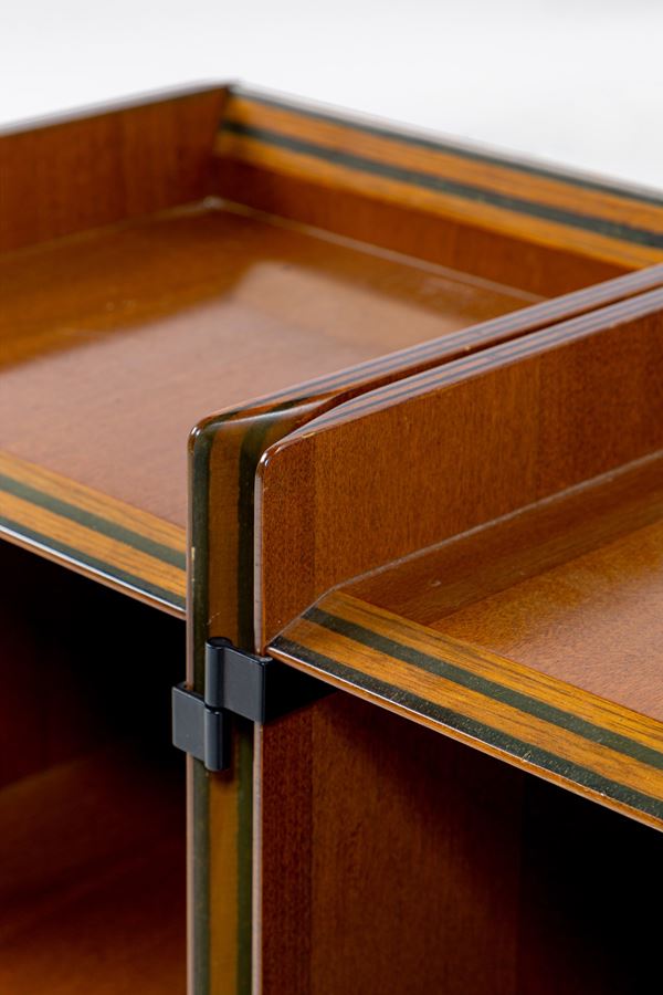 Legno di noce massello con inserti in legno ebanizzato, pelle.