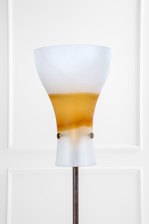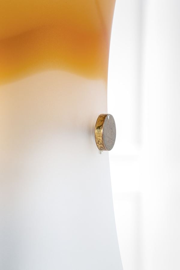 Vetro satinato con fascia ad incalmo in vetro a pennellate, ottone.