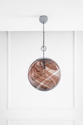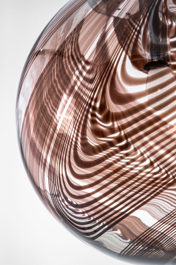 Vetro soffiato cristallo e canne ruggine, metallo cromato.