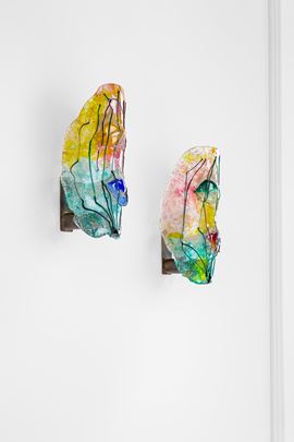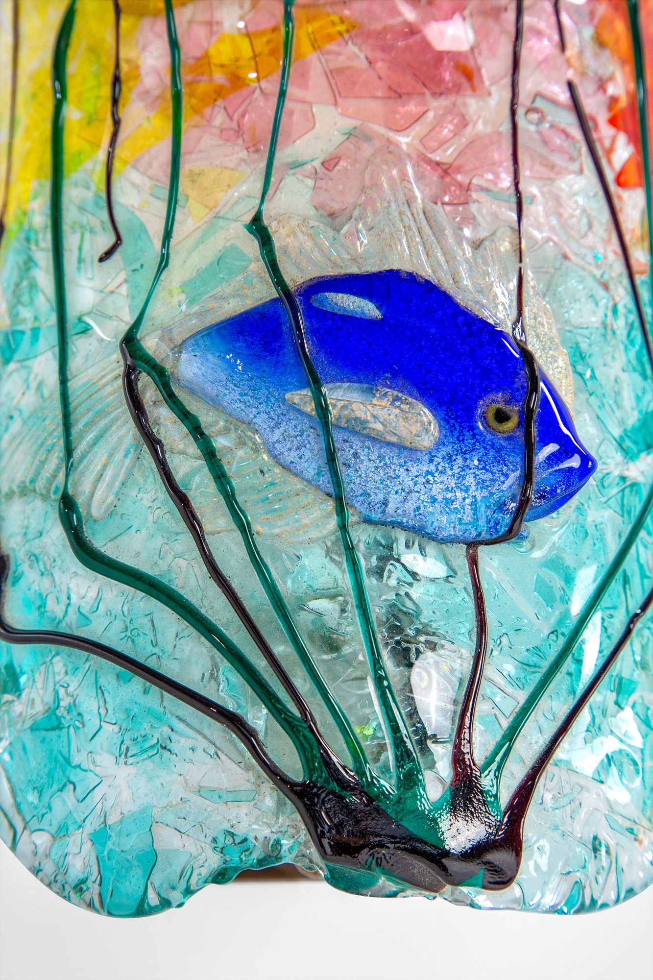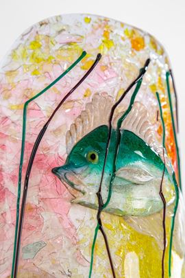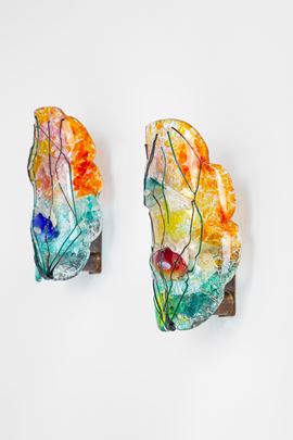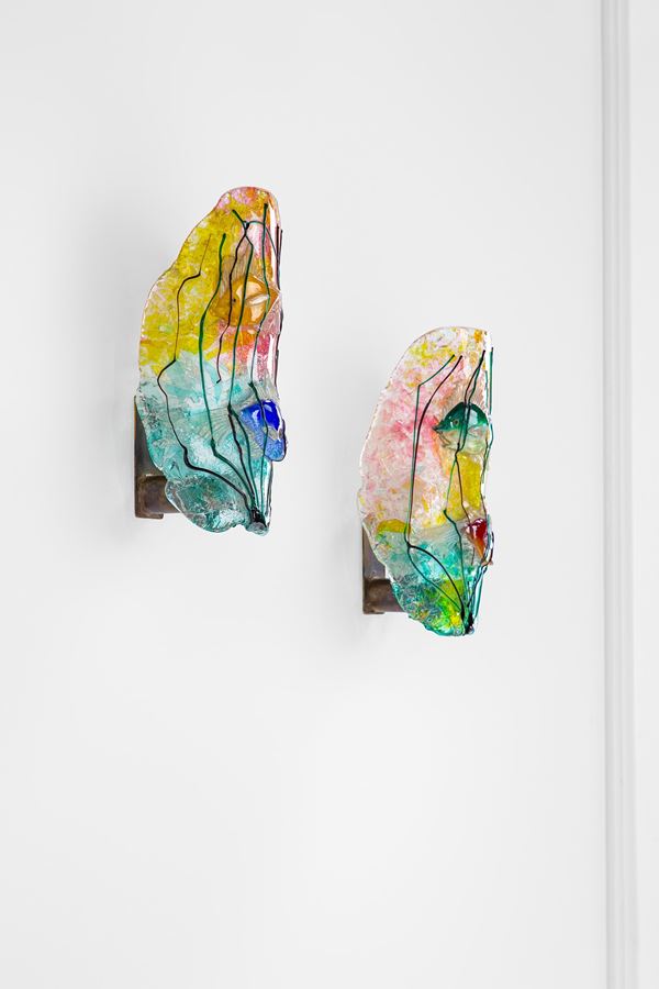 Vetro cristallo con inclusioni di vetro colorato, ottone.