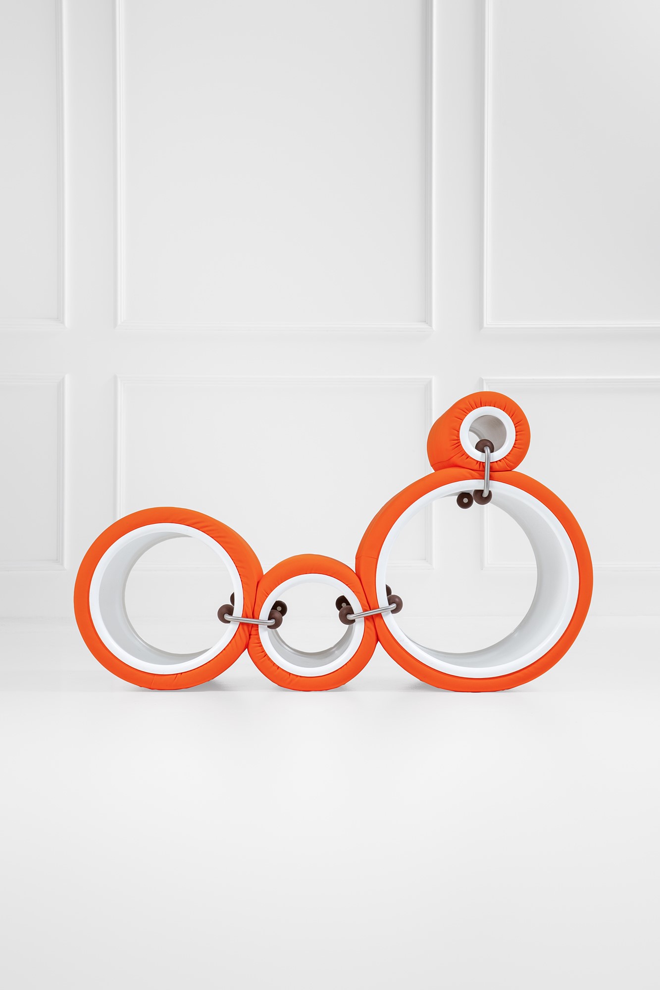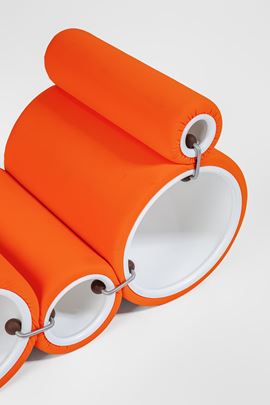 Resina plastica, schiuma rivestita in materiale bielastico, metallo cromato.