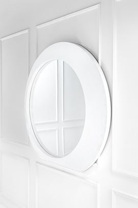 Legno laccato, vetro specchiato.