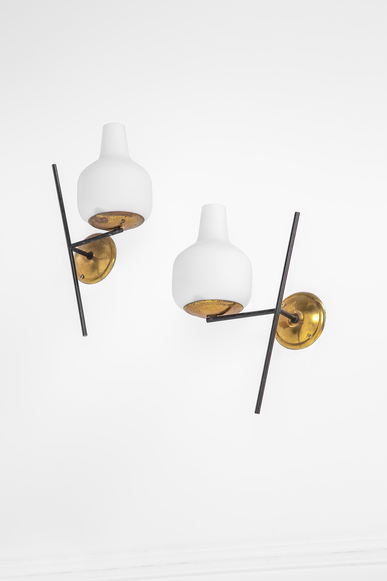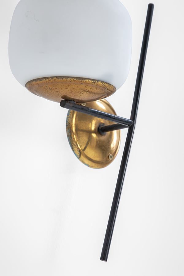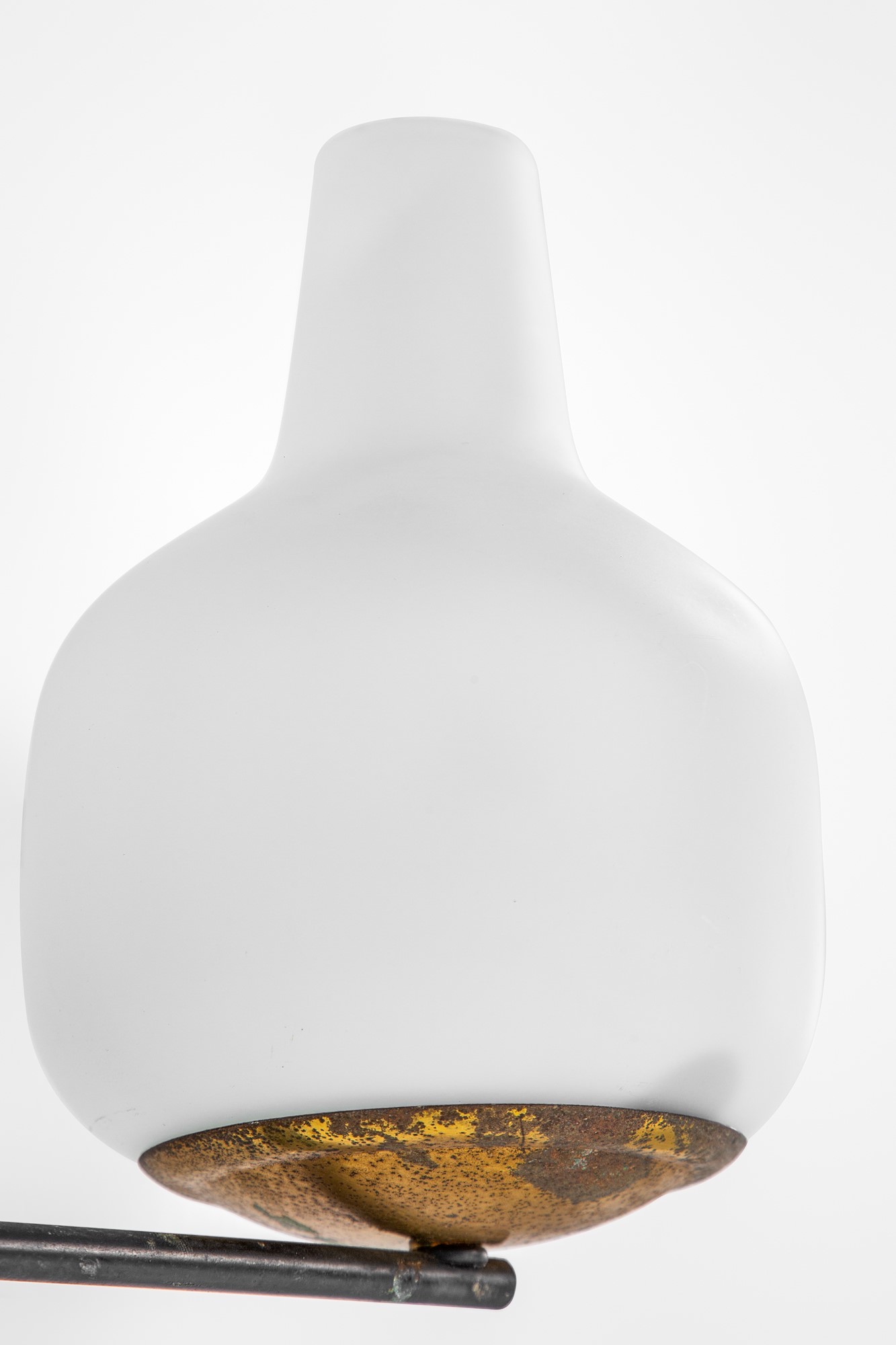 Metallo verniciato, ottone lucido, vetro opalino.