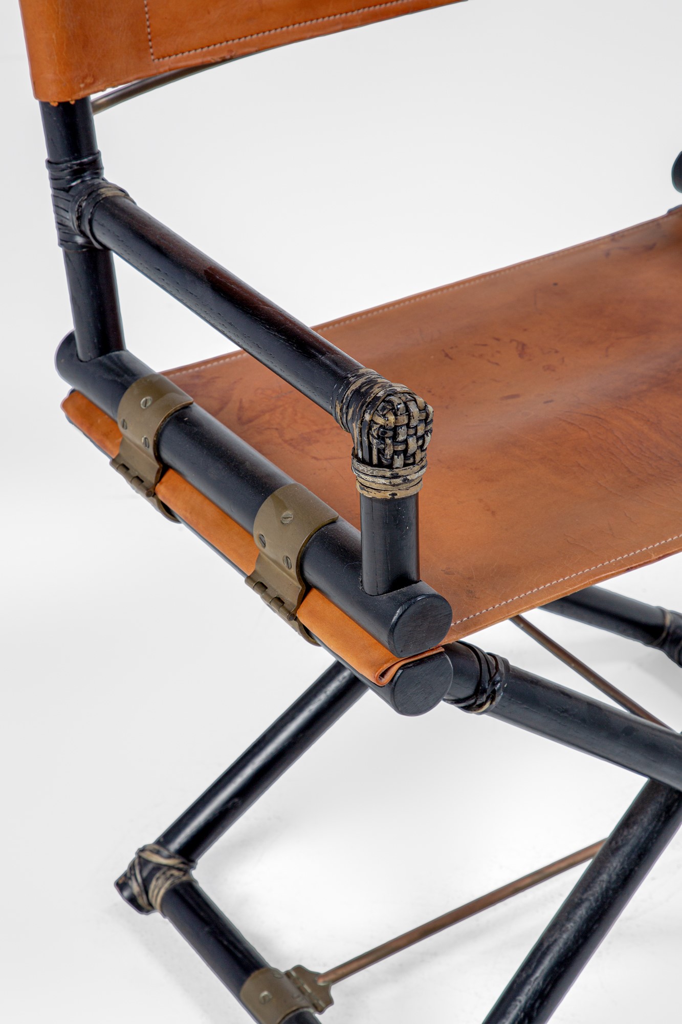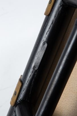 Legno verniciato, pelle, cuoio tinto, ottone.