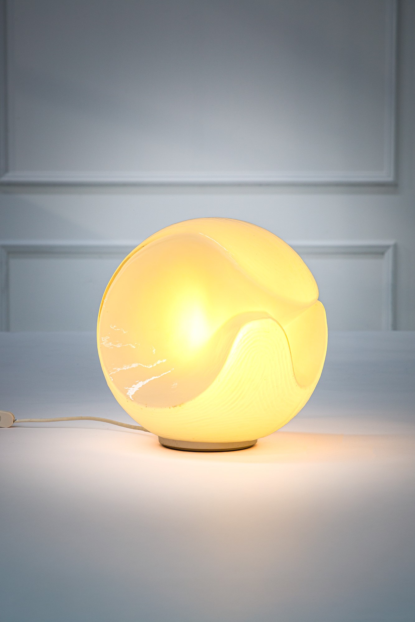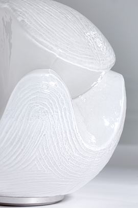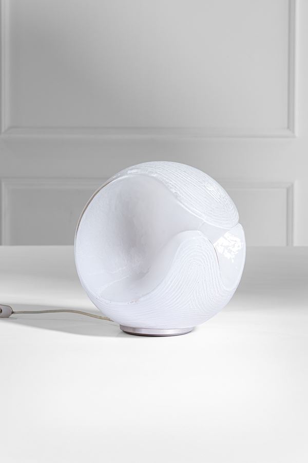 Vetro lattimo modellato a caldo, metallo laccato.