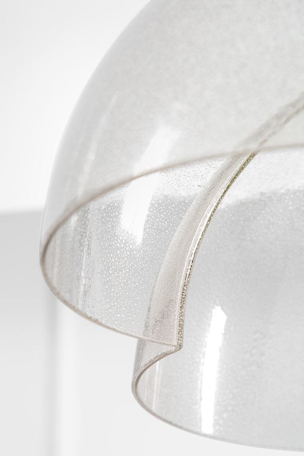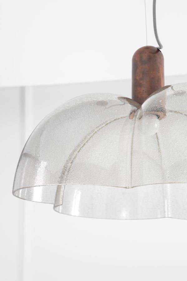 Vetro fumè a bollicine soffiato in stampo, ottone effetto rame.