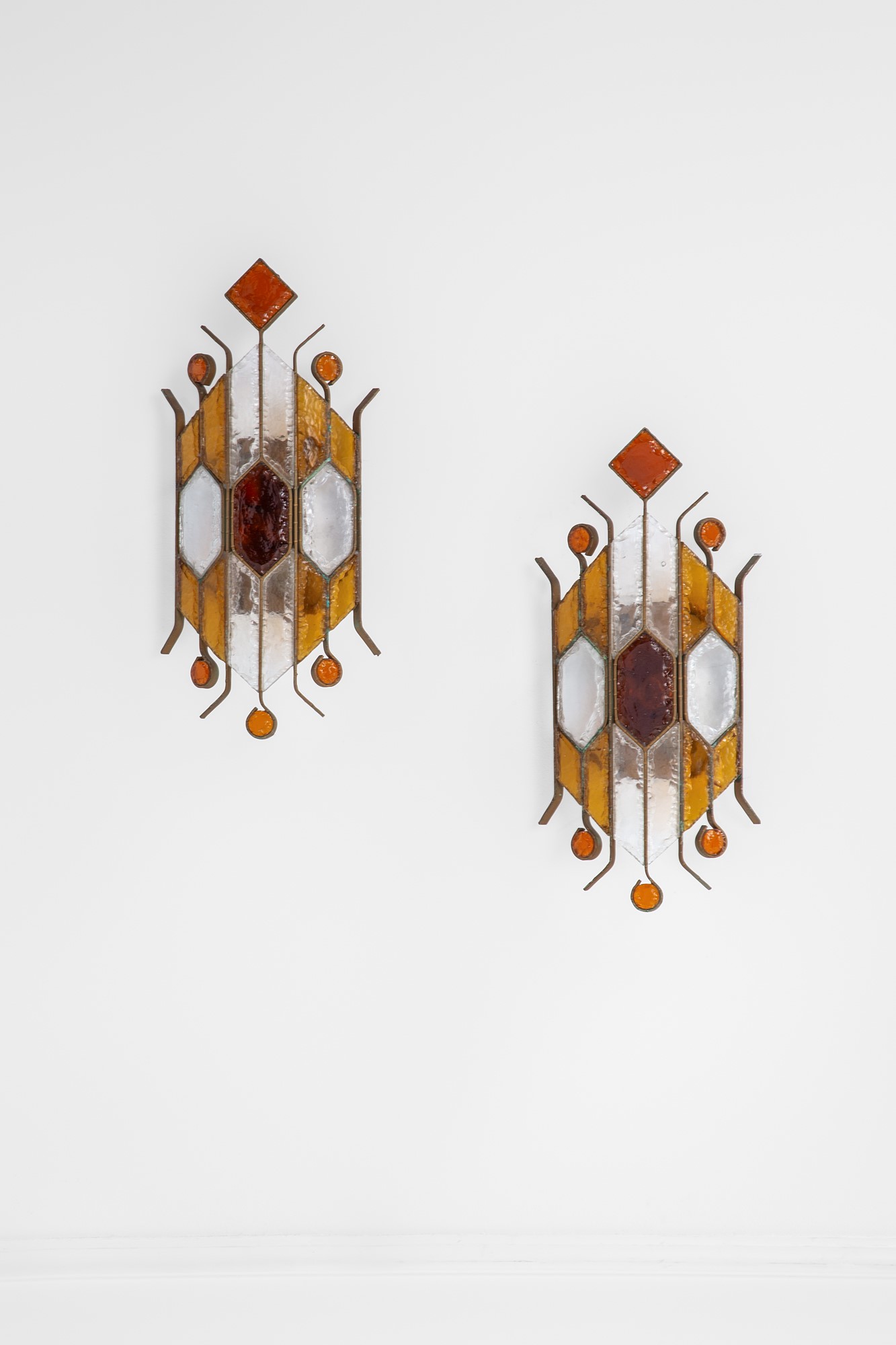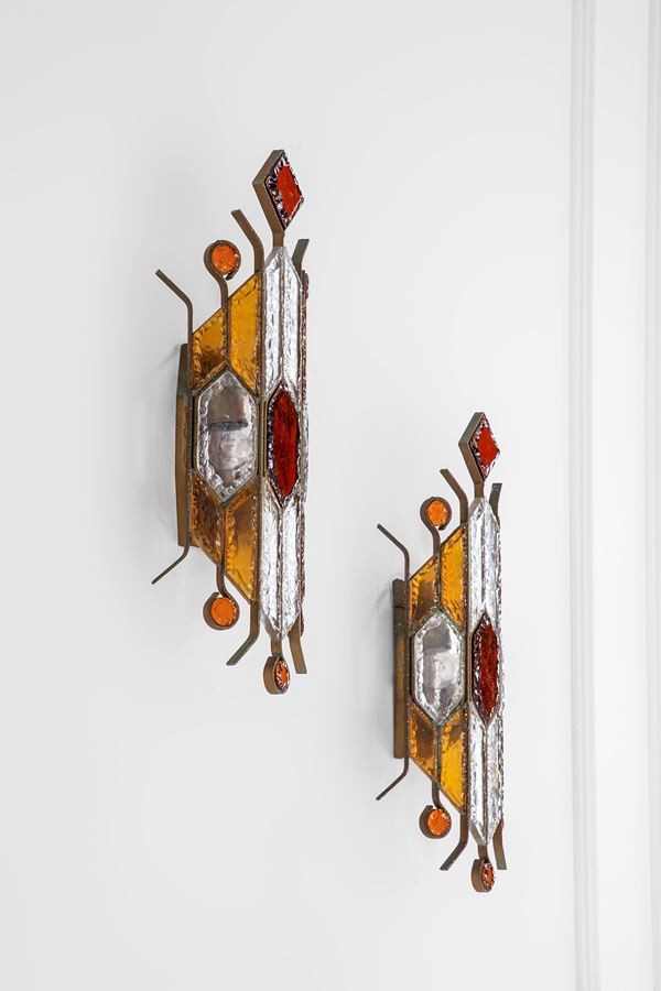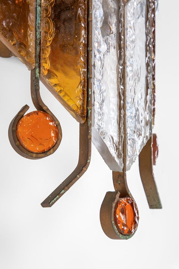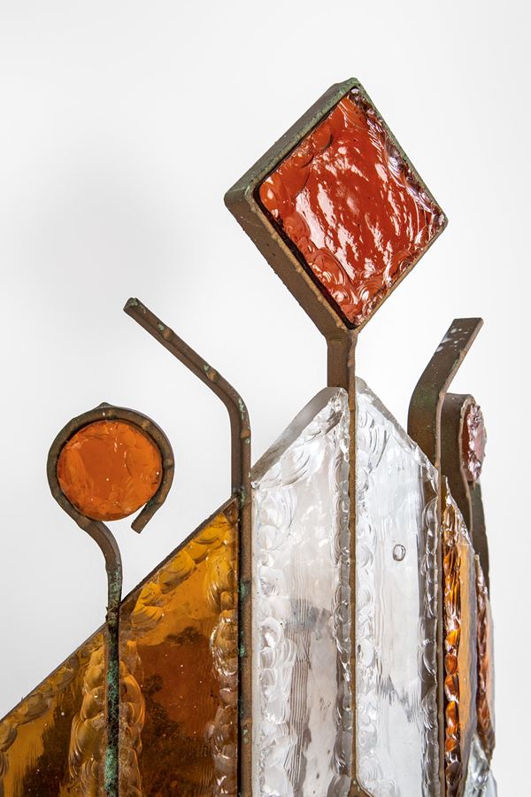 Ferro verniciato, vetro policromo di forte sepessore lòavorato a spacco.