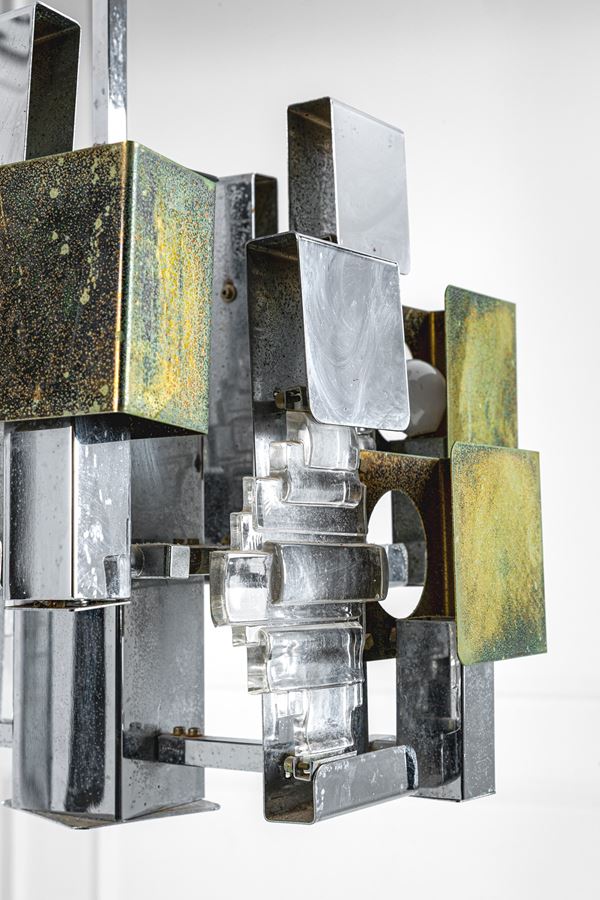 Metallo cromato, metallo ottonato, metacrilato trasparente.