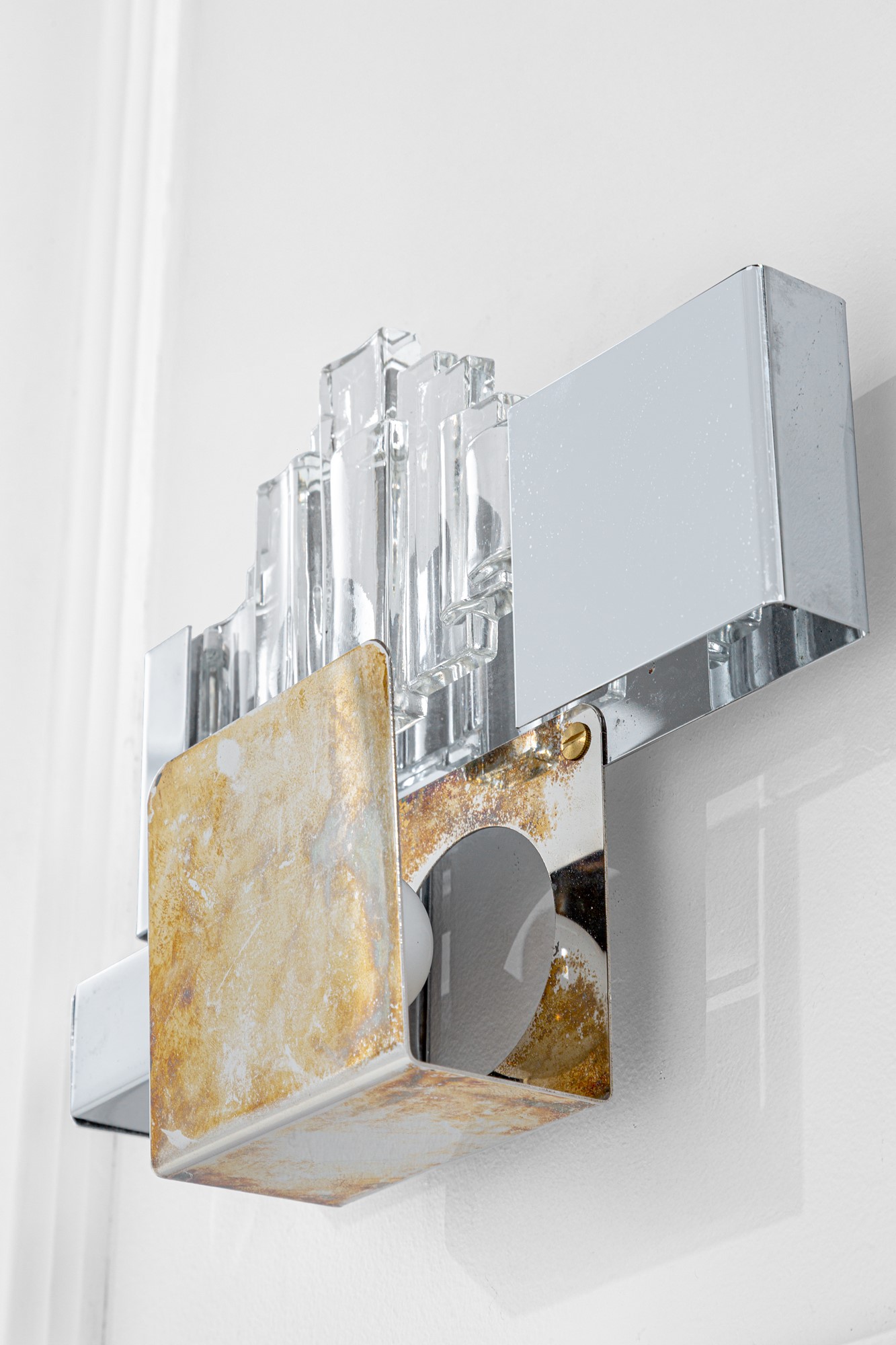 Metallo cromato, ottone, metacrilato trasparente.