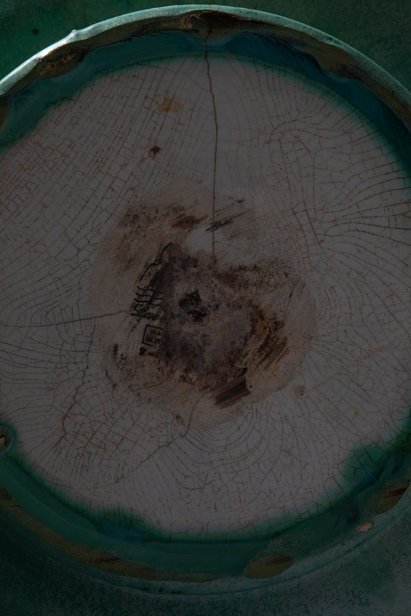Terraglia a colaggio con decoro di smalto colato.