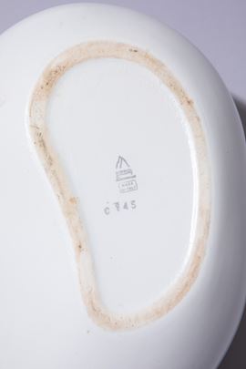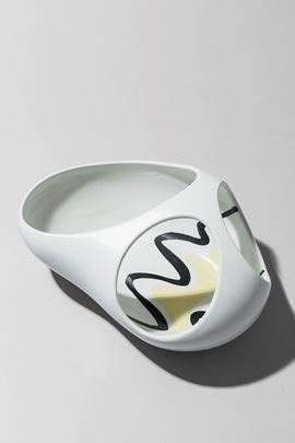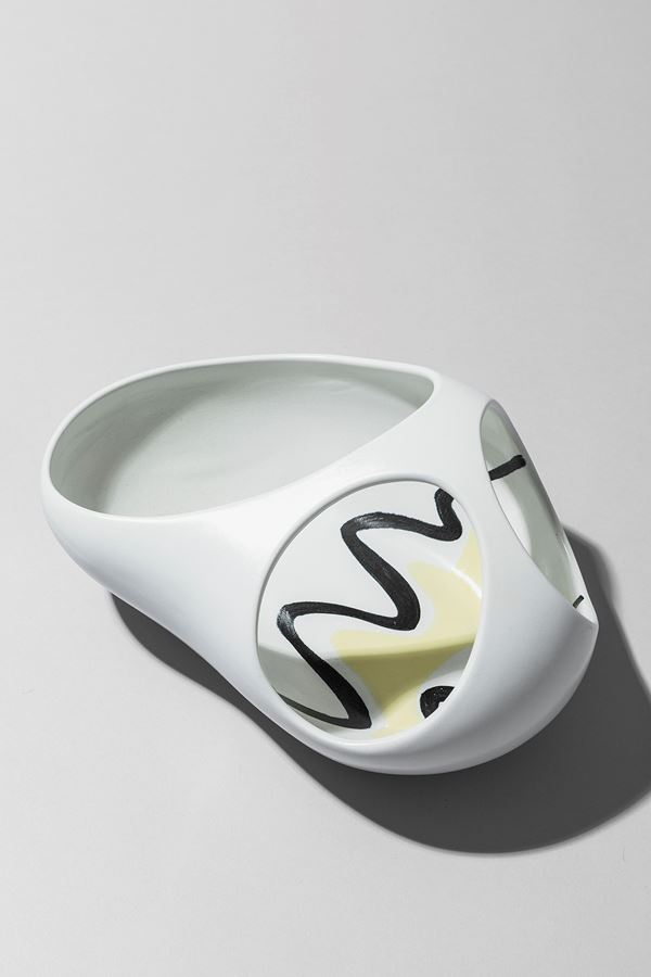 Terraglia forte foggiata a colaggio, decorata con motivi astratti.