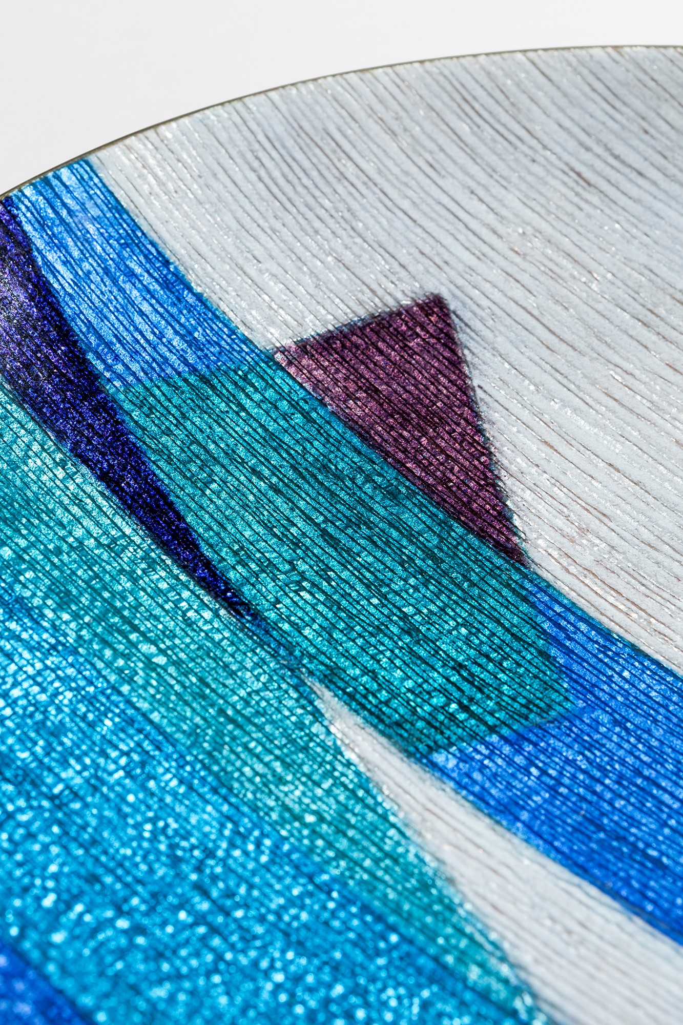 Smalto dipinto policromo su rame e lamina d’argento incisa.