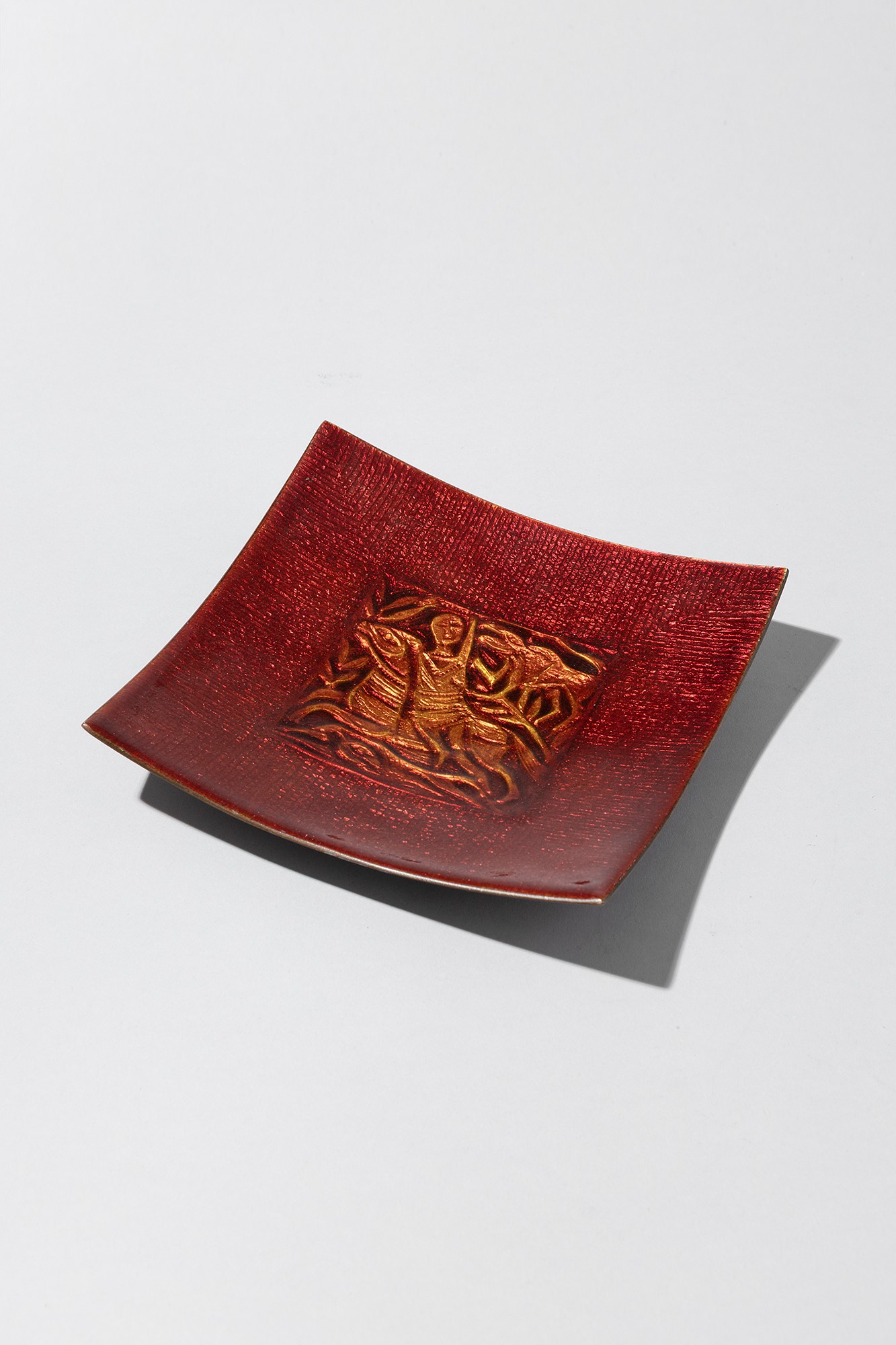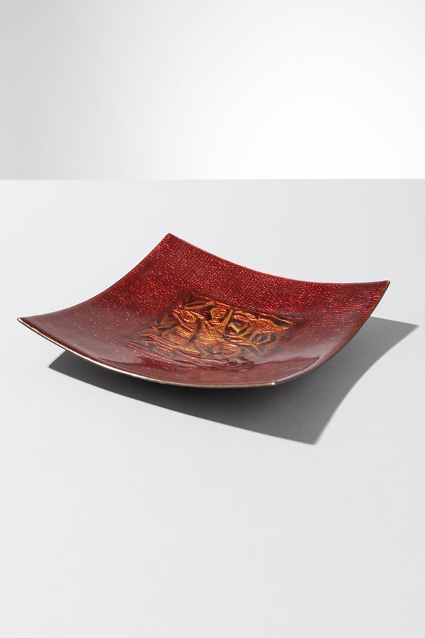 Smalto policromo su rame e lamina d’argento incisa e modellato a bassorilievo.