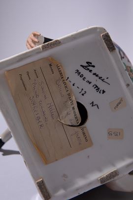 Terraglia modellata a colaggio, decorata in policromia sotto vernice.