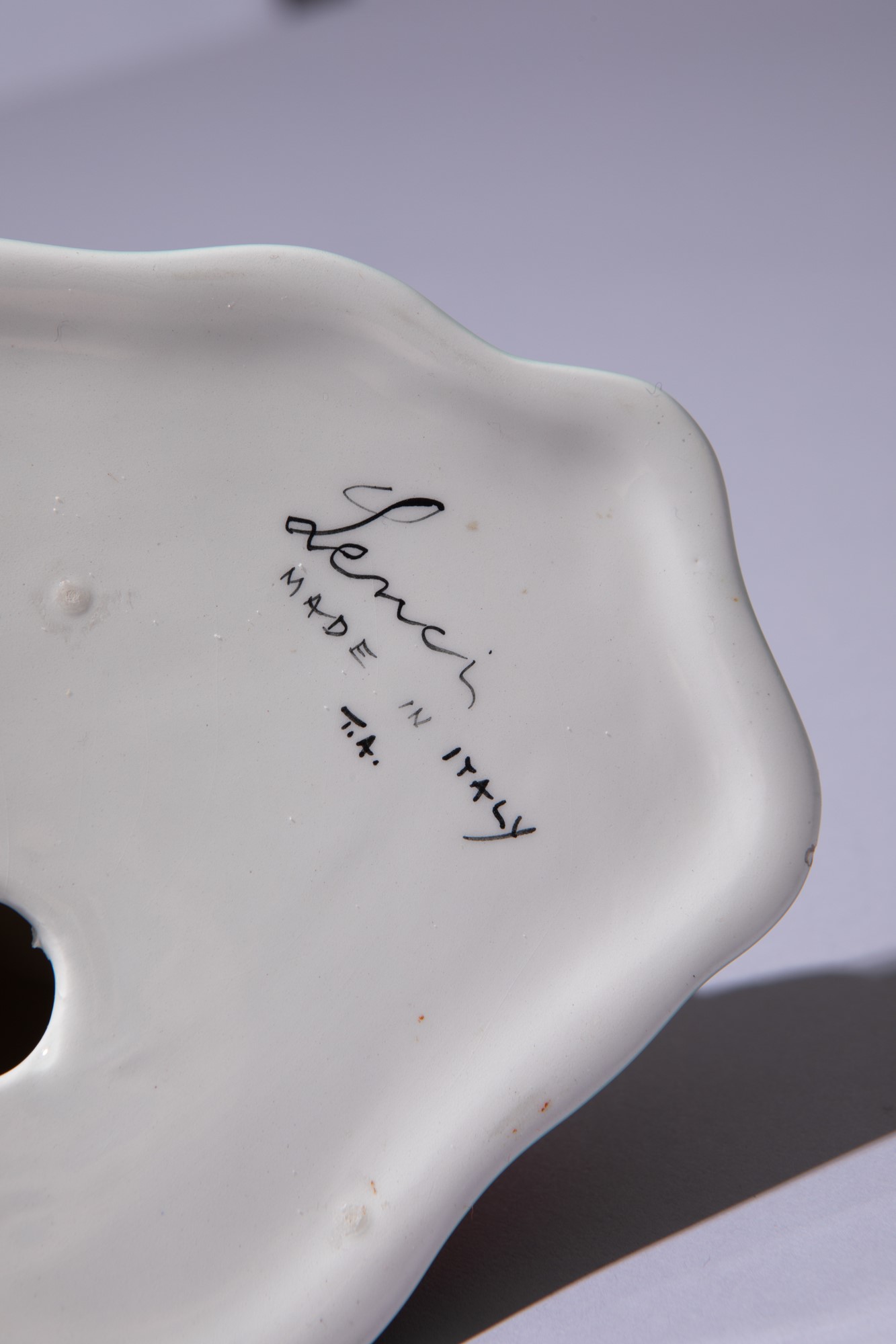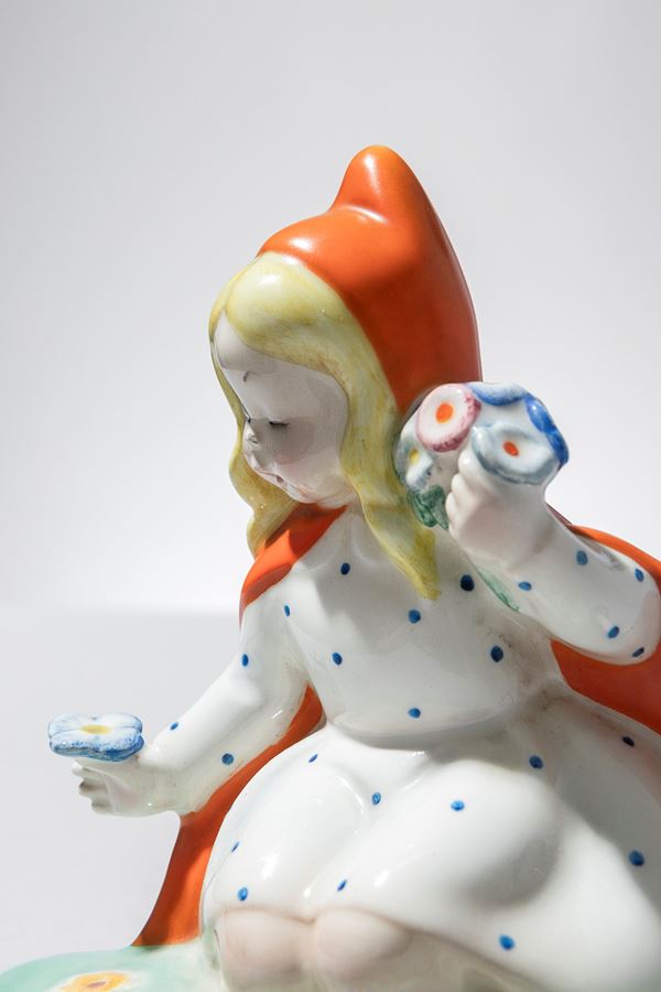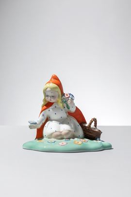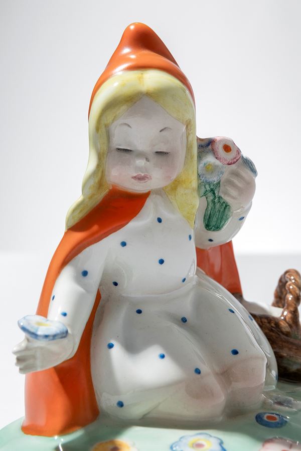 Terraglia modellata a colaggio, decorata in policromia sotto vernice.