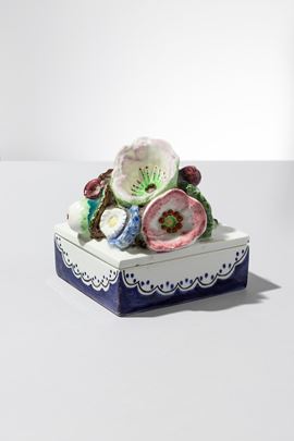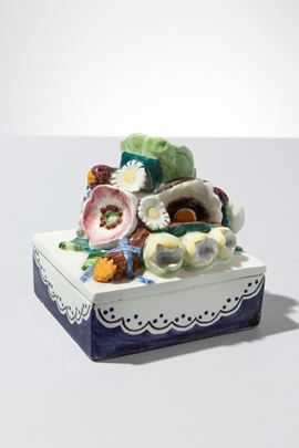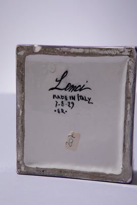 Terraglia modellata a colaggio, decorata in policromia sotto vernice.