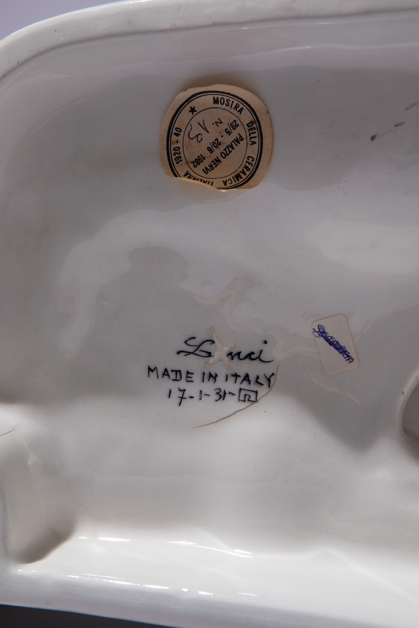 Esposto alla mostra della ceramica italiana 1920-40 presso Palazzo Nervi dal 29-5 al 20-6 1982 con il numero 19