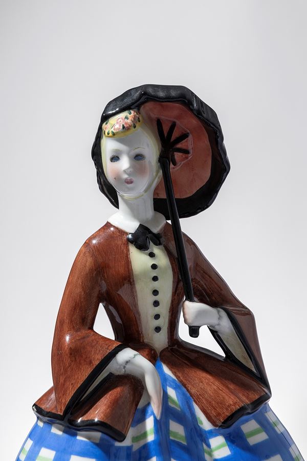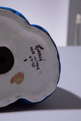 Terraglia modellata a colaggio, decorata in policromia sotto vernice.