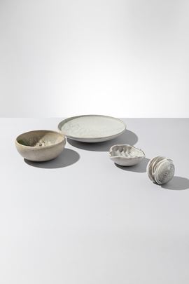h cm 6, diam. cm 32; h cm 9, diam. cm 20; cm 5x15x15; h cm 8, larg. cm 10