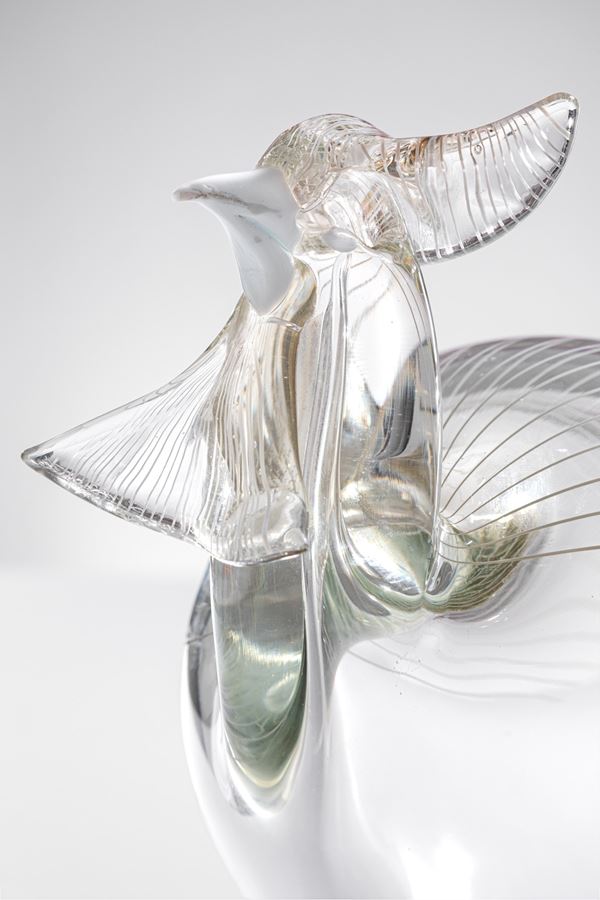 Vetro soffiato cristallo con particolari in vetro lattimo.