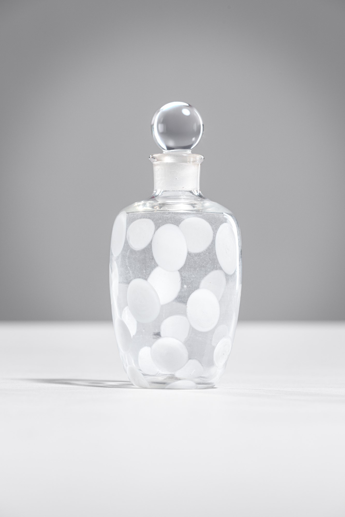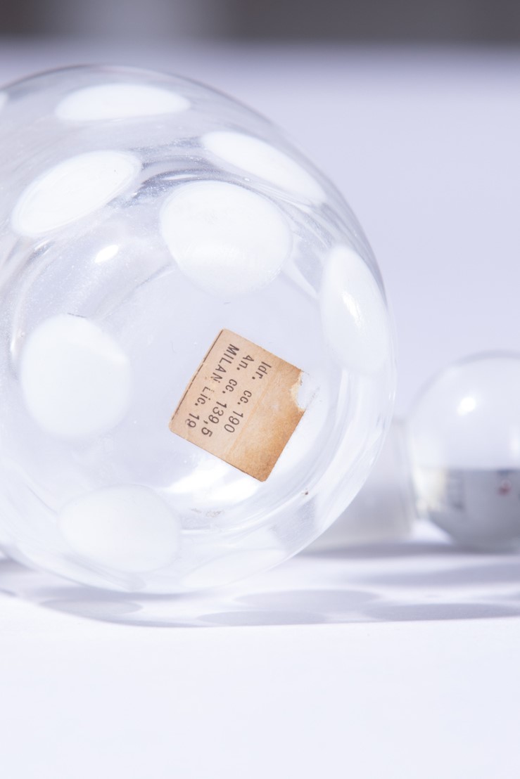 Vetro cristallo decorato a puntini in vetro lattimo.