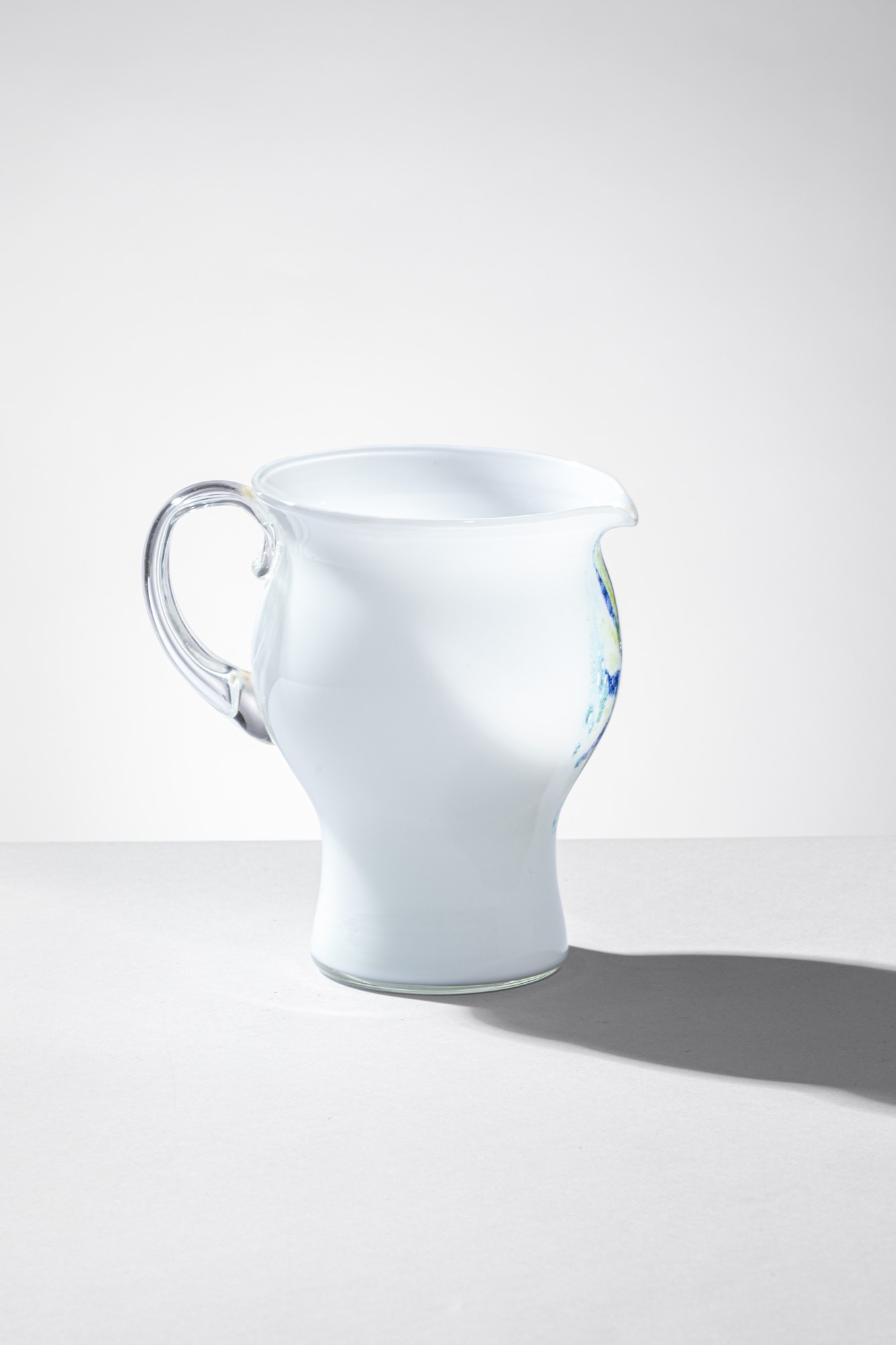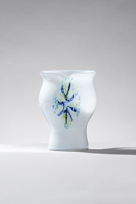 Vetro lattimo con decoro a polveri policrome.
