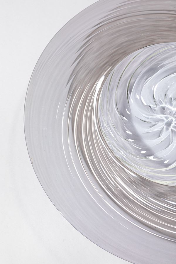 Vetro a incalmo con costolature diagonali cristallo e grigio talpa.